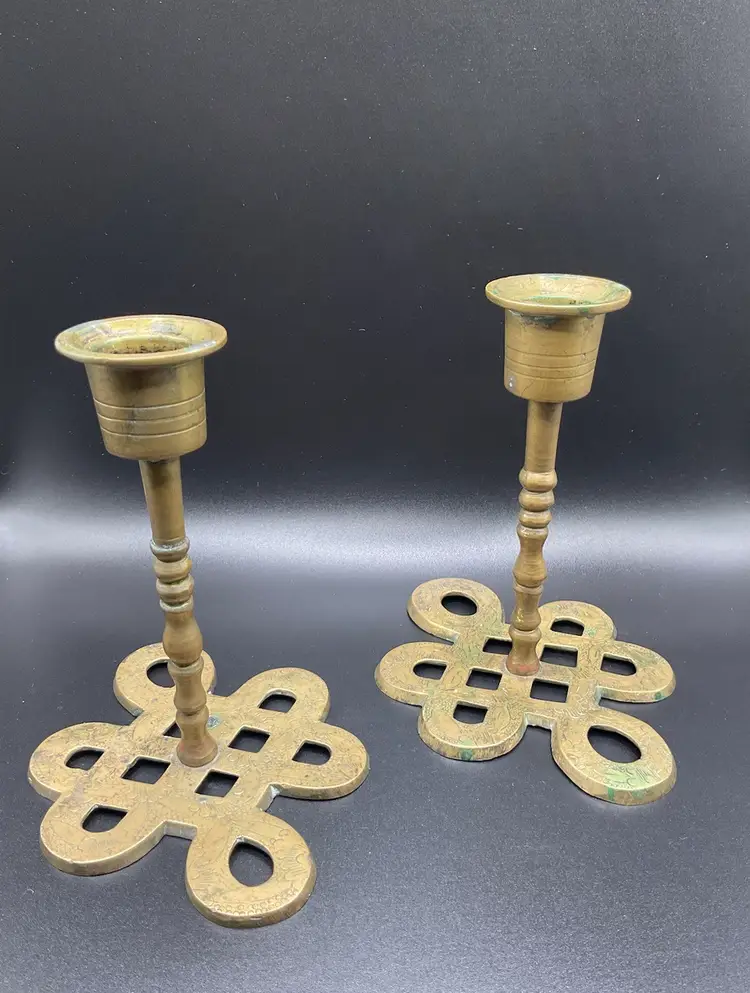 Base is 4-1/2” x 3-1/4” and candlestick 5” high. Both are in good condition.