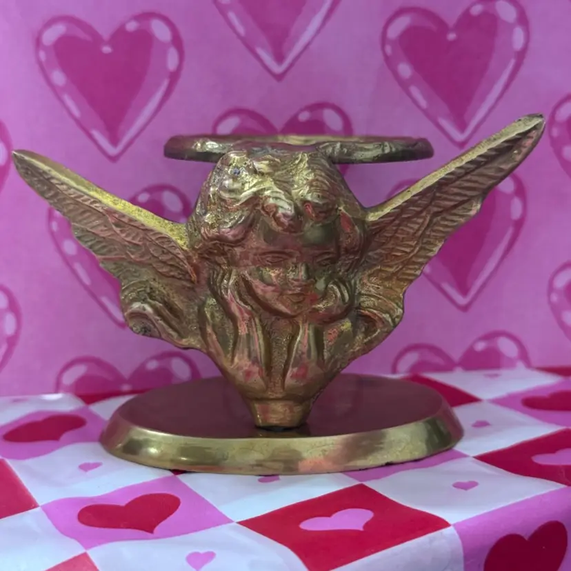 Beautiful brass cherub candle holder. 2 3/4“ x 4 1/2“.