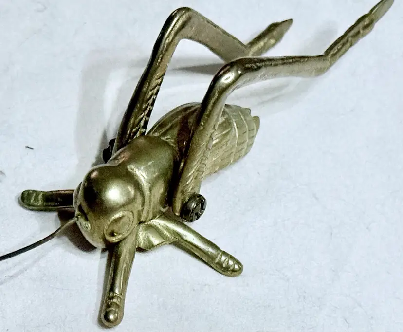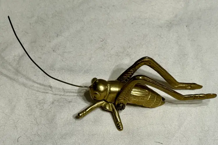 vintage brass cricket, brass insect figurine, collectible brass decor, mid-century brass animal, brass paperweight, good luck cricket statue, farmhouse brass decor, vintage brass figurine #cottage core