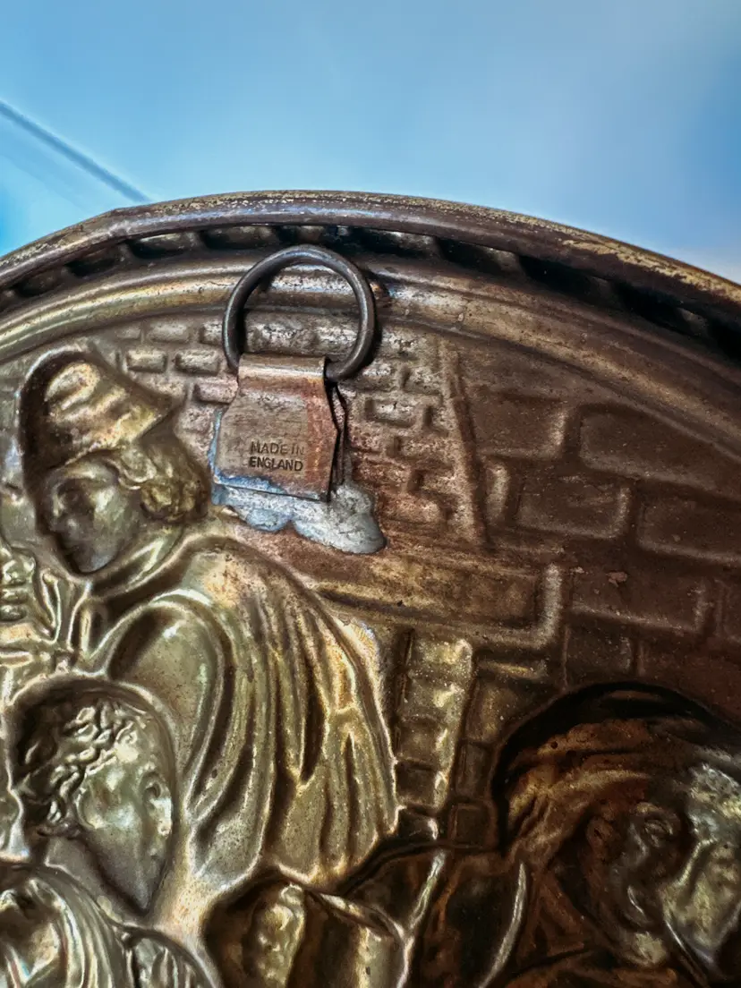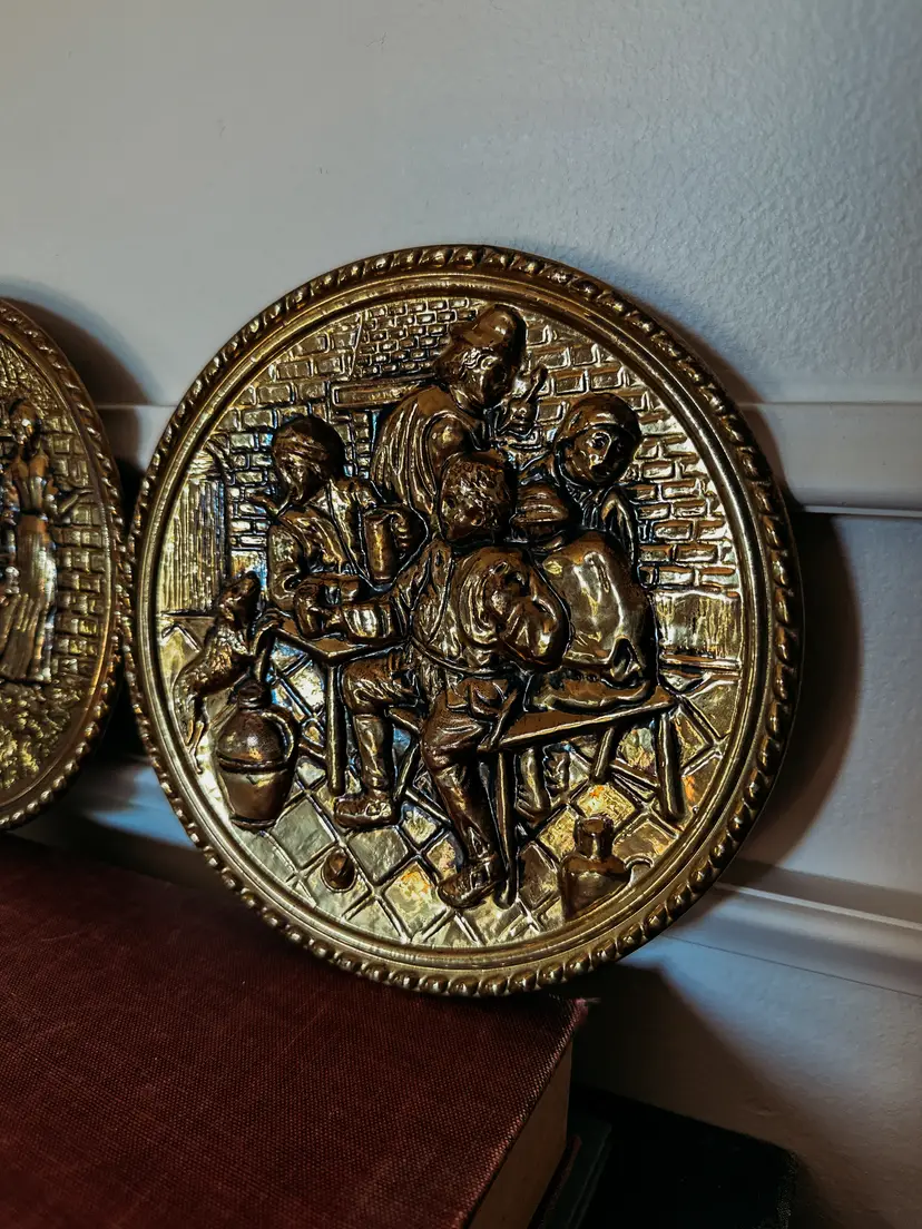 hooks on the back to hang these as part of a gallery wall. Their warm lovely brass tarnish is gorgeous! 8" wide