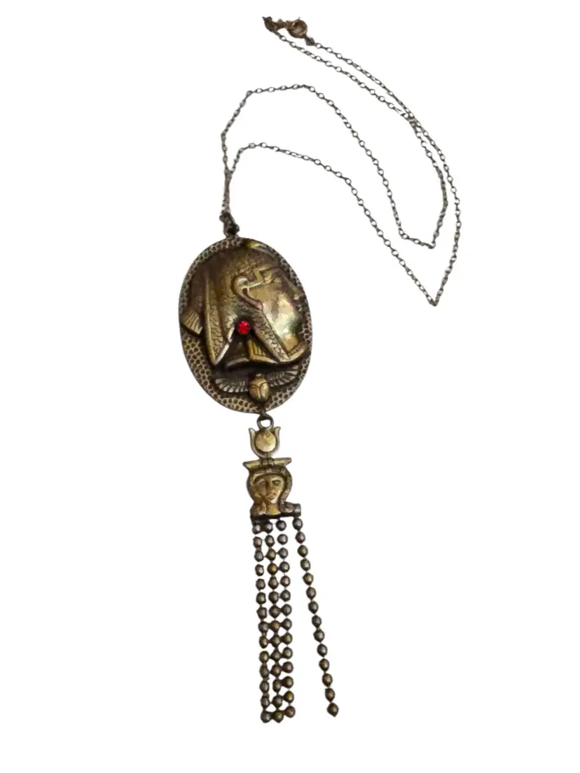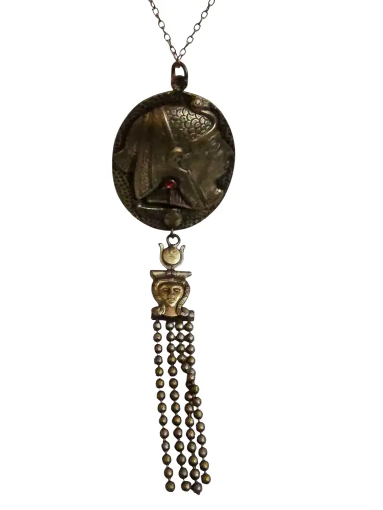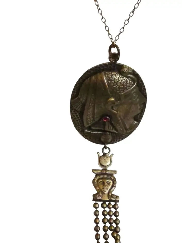 Vintage Brass Egyptian Revival Necklace (A9474)
