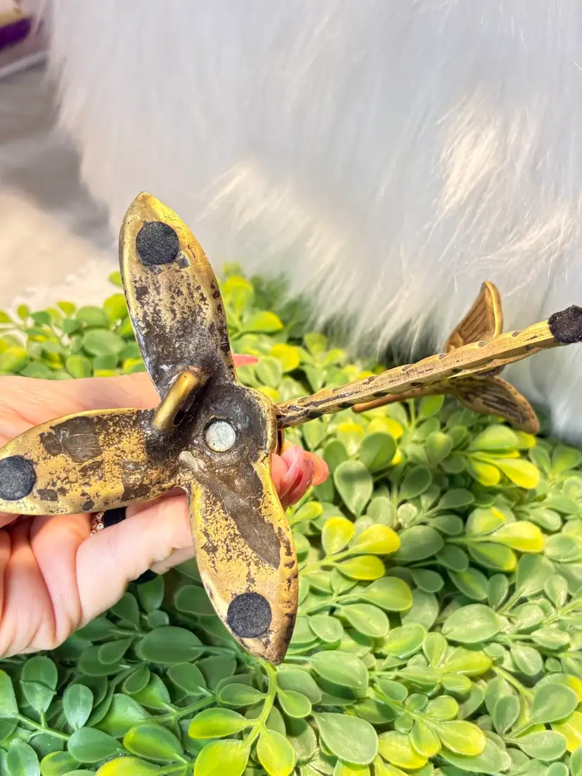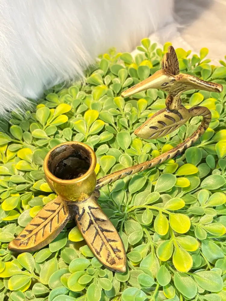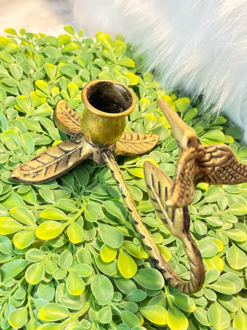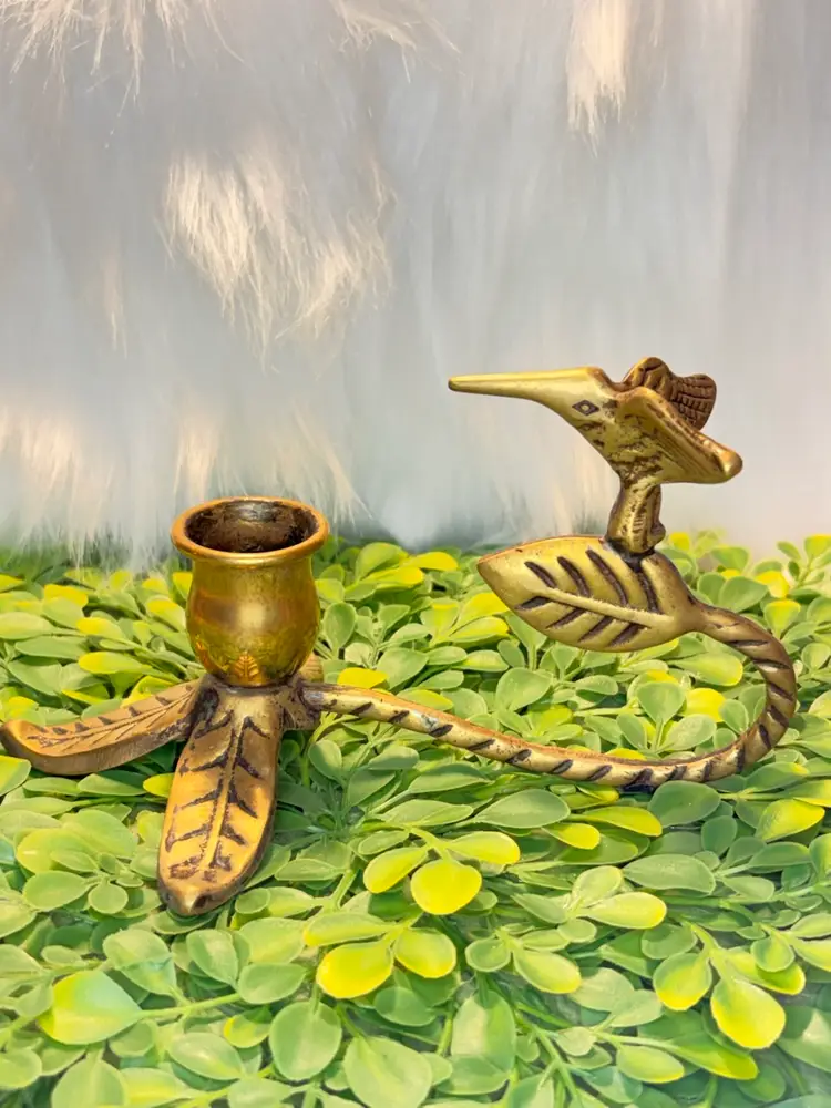 Vintage Brass Figural Hummingbird & Leaf Candle Holder
