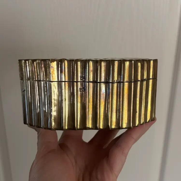 2 1/2”tall x 5 1/2”long x 3”wide Vintage wear & patina as shown