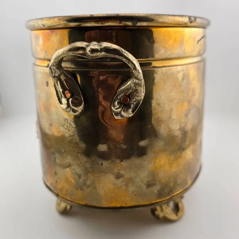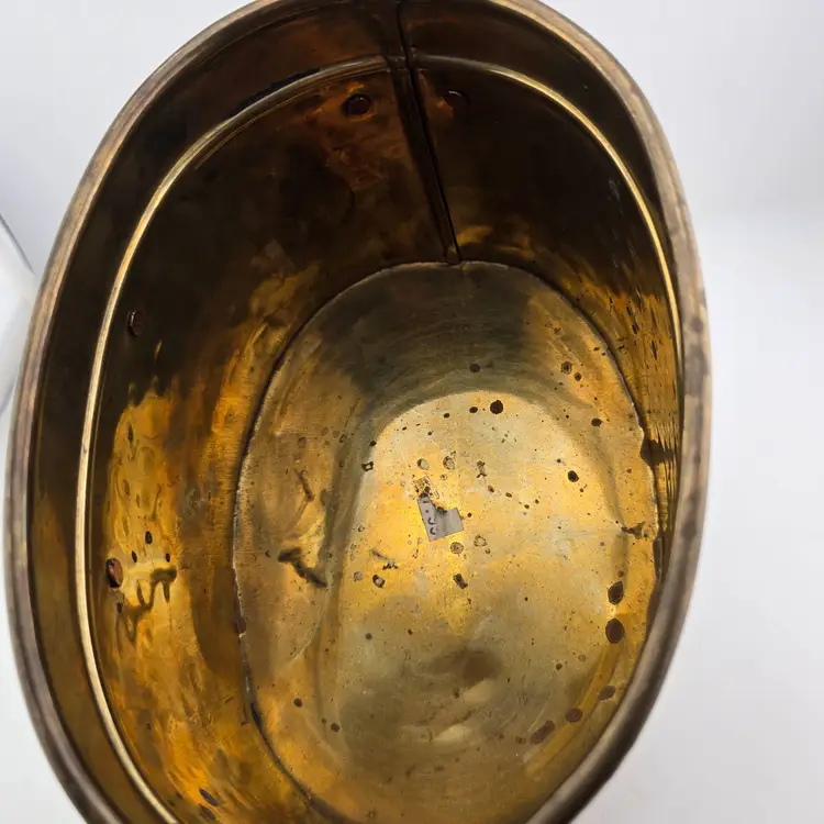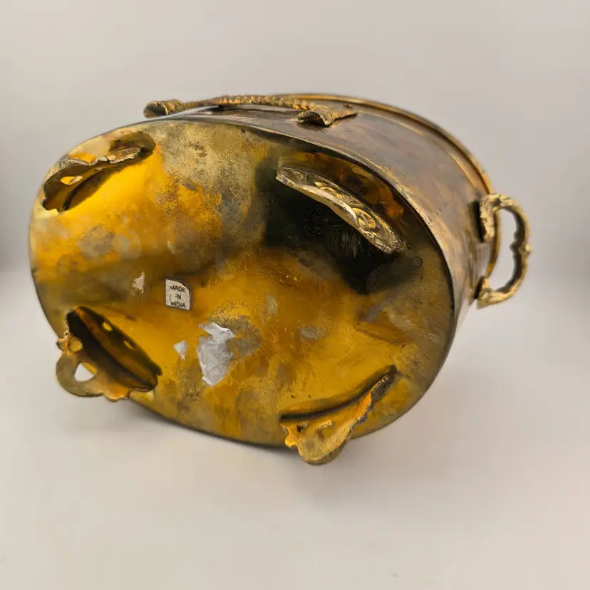 Heavy patina. Five inches by 7 inches wide.