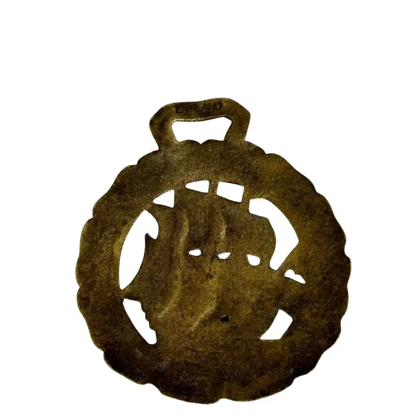 Vintage English Galleon ship nautical large brass horse tack medal; sailing nautical ship graces this extra large medallion decorative piece.This would look beautiful decorating a fireplace, mantel, barn, tack room, or living room, or as a gift for the equestrian or ship lover! English souvenir, British decor.
