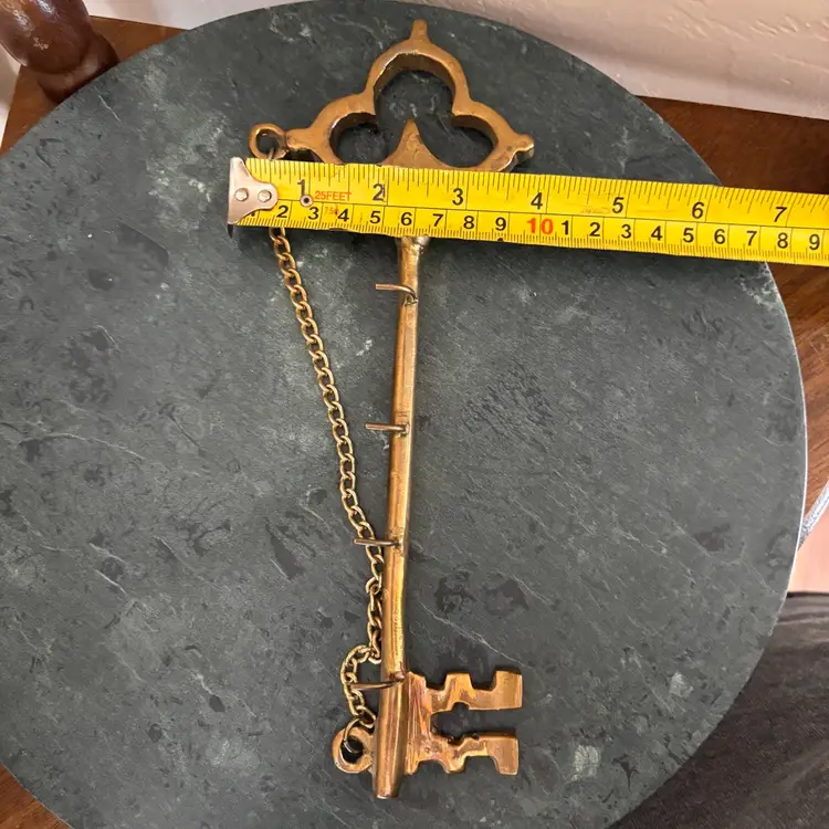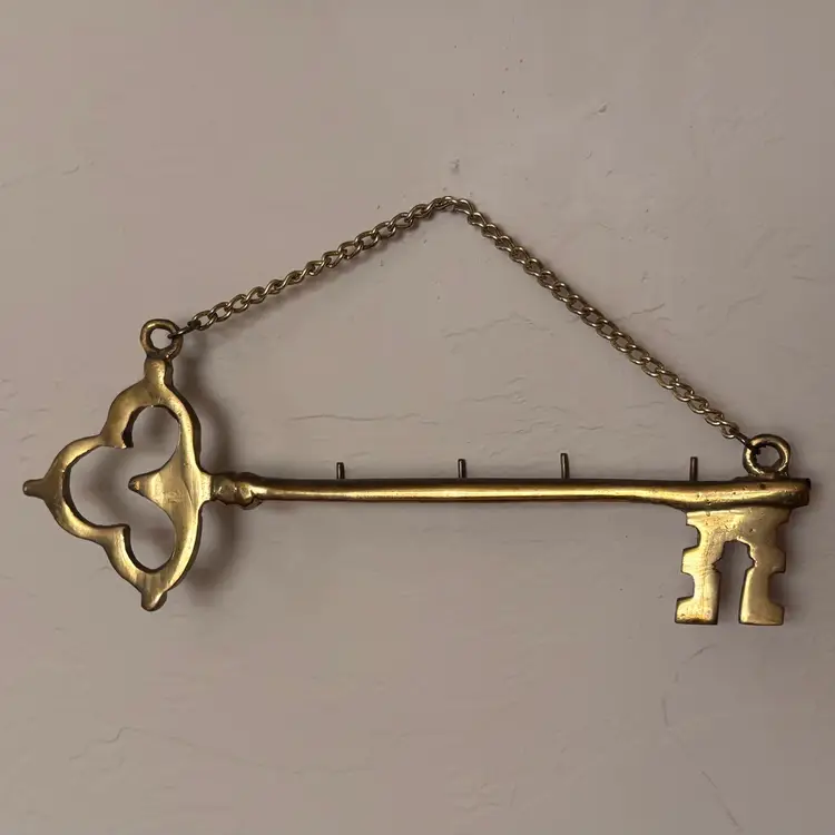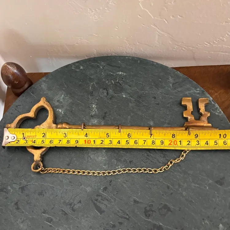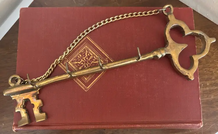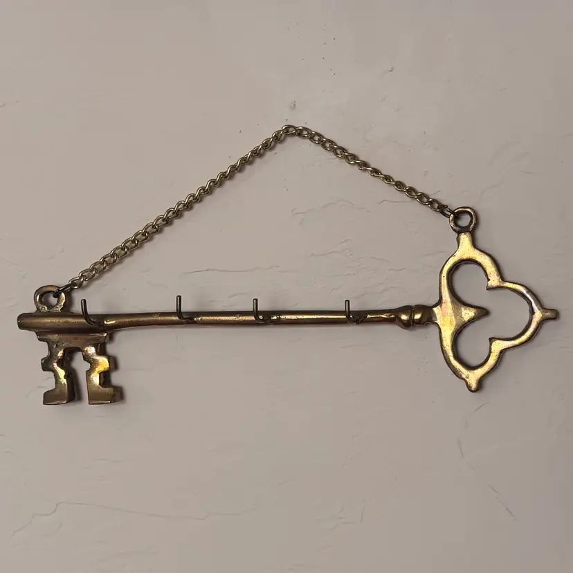 Homey brass key with 5 hooks & hang chain 10”long x 4”tall Vintage wear as shown