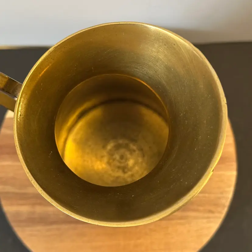 This is a vintage brass pitcher vase with rope embellishments, often used for decorative purposes like holding flowers or as a rustic farmhouse accent. Solid brass made in India. Decorative rope-like texture wrapped around the neck and base. Versatile piece suitable as a vase, planter, or tabletop centerpiece. Rustic, vintage, or classic English farmhouse design.