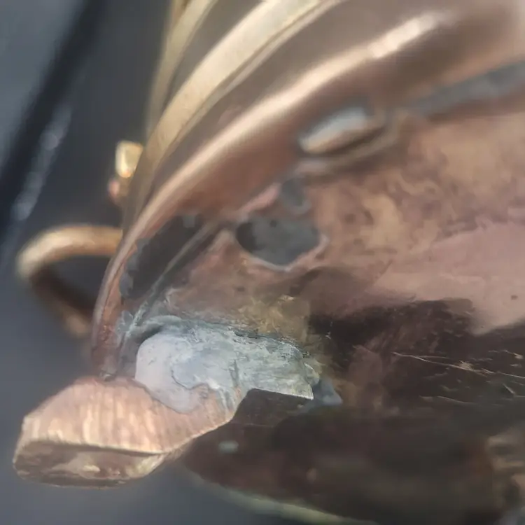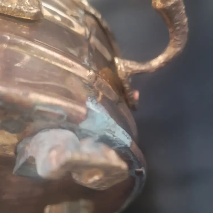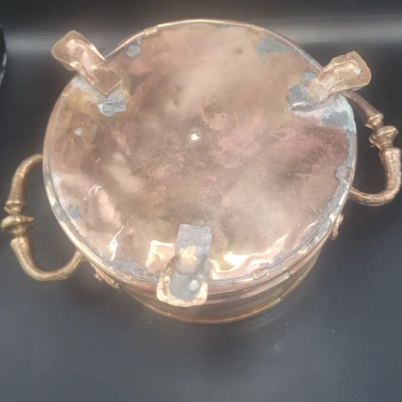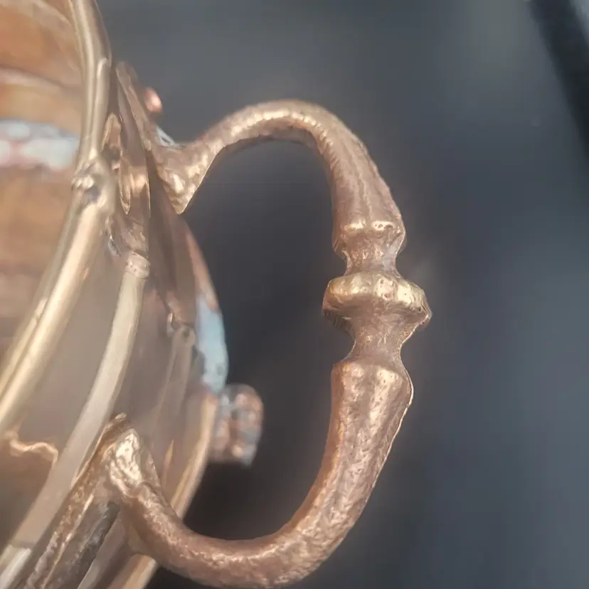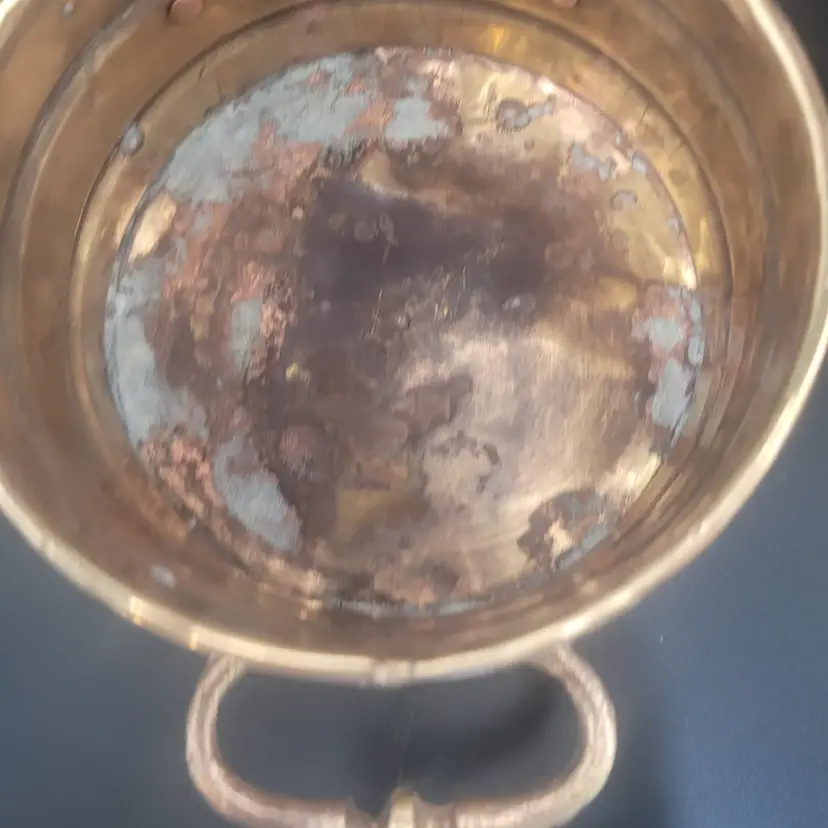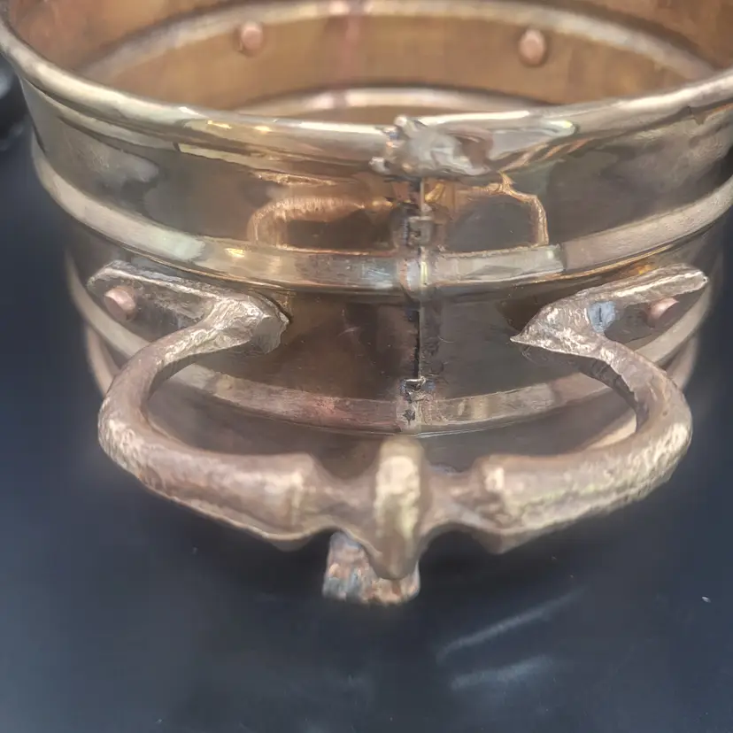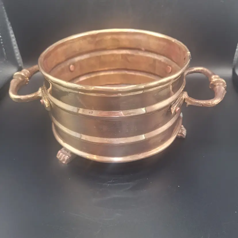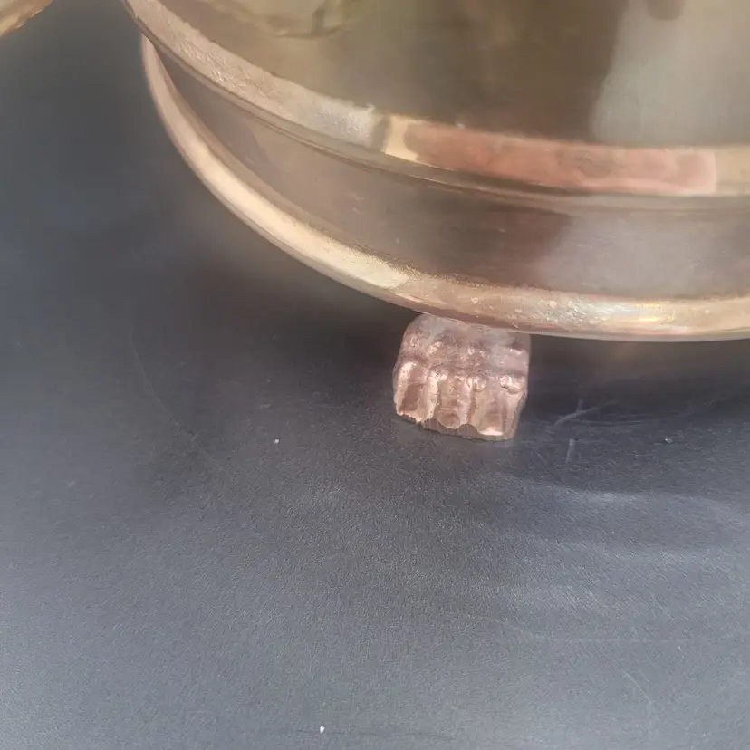 Add a touch of elegance to your decor with this vintage brass planter. Featuring intricate lion paw feet and sturdy handles, it's perfect for showcasing your favorite plants or as a decorative piece.