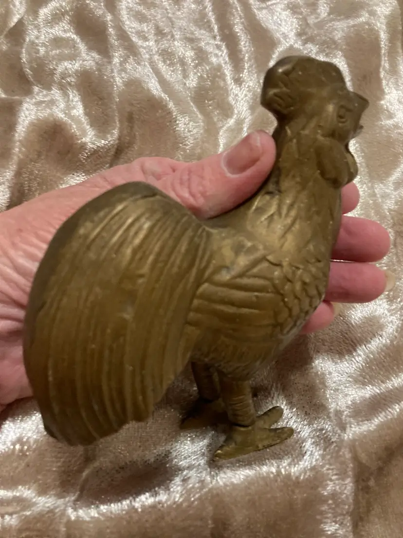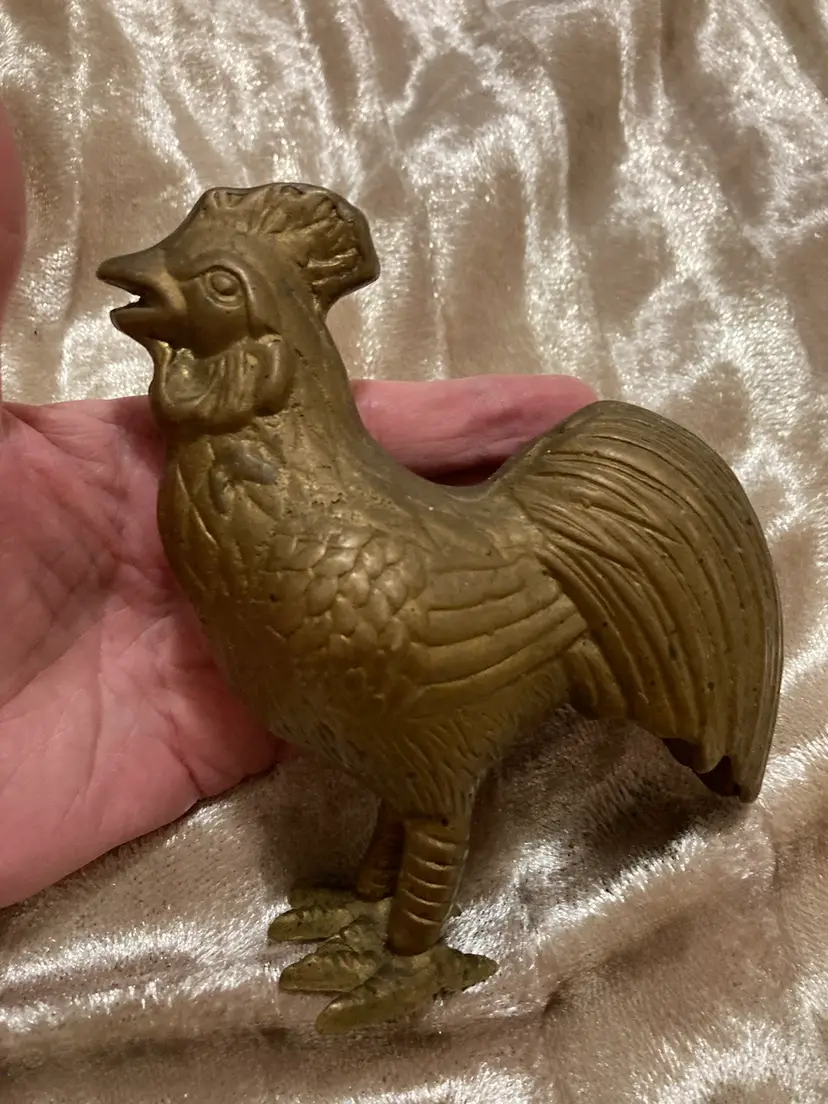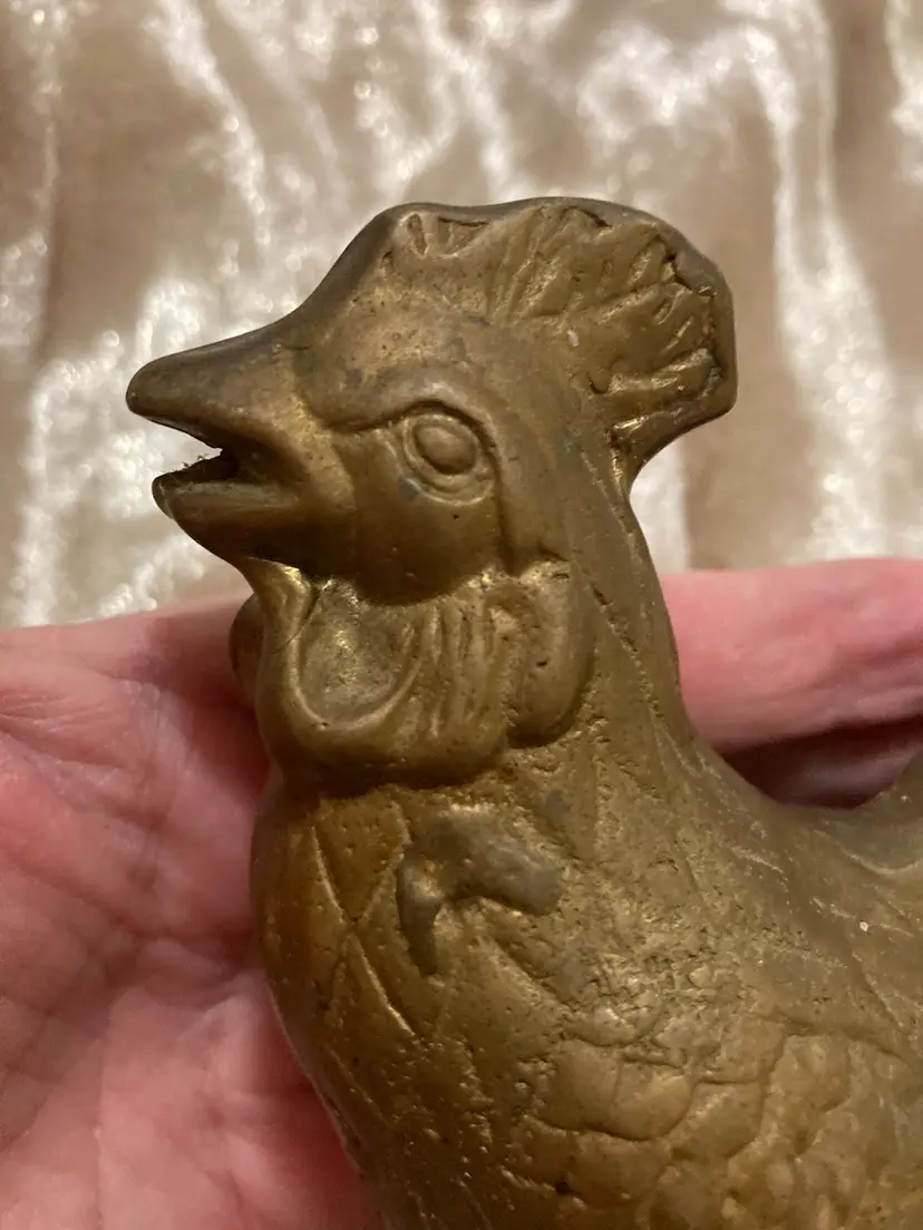5.25”x5” - BOHO Hippie Brass Rooster Statue - Brass Kitchen Farmhouse Chicken