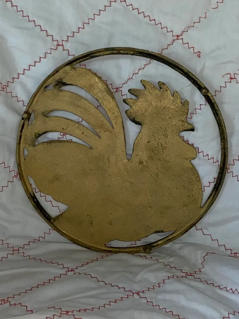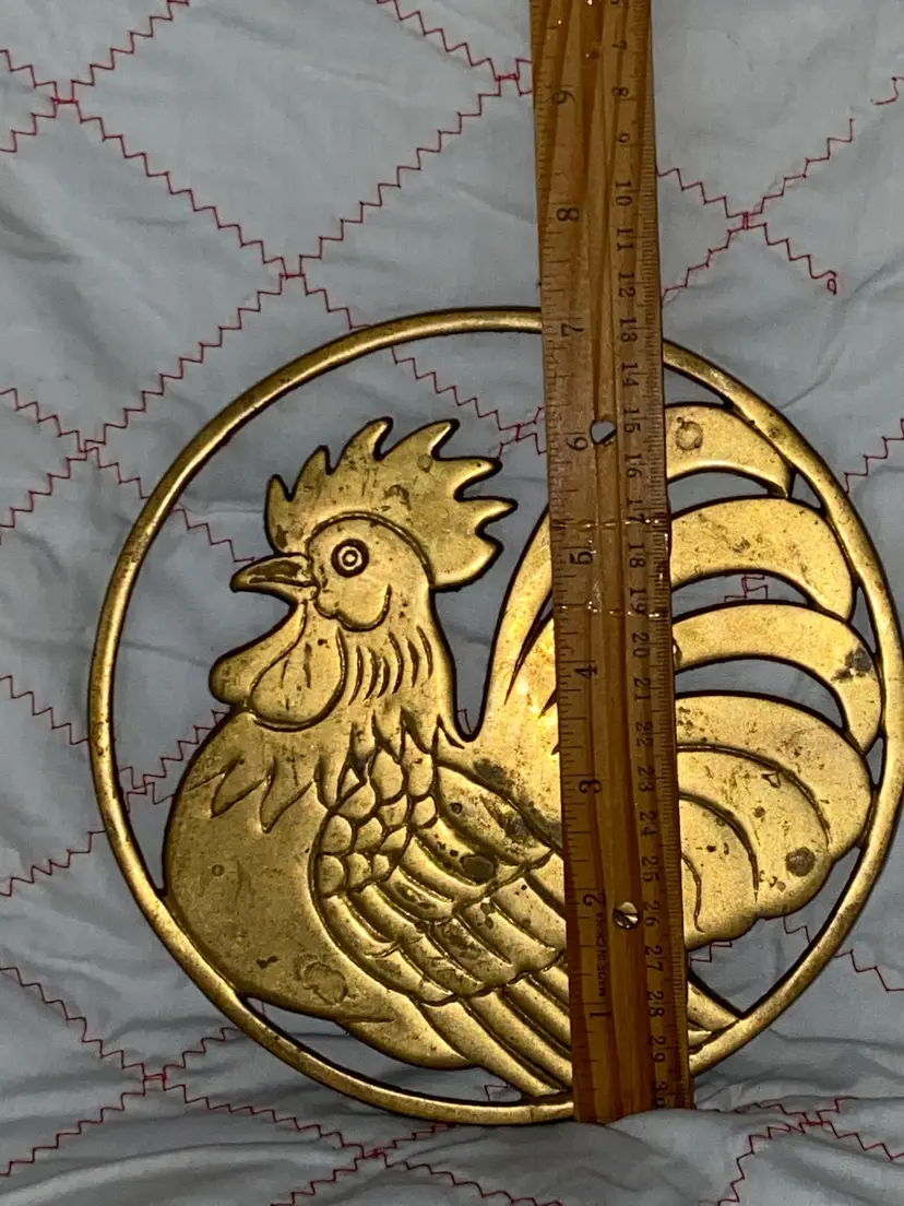 Vintage Brass Rooster Trivet. 7โ and it does have some natural patina ๐