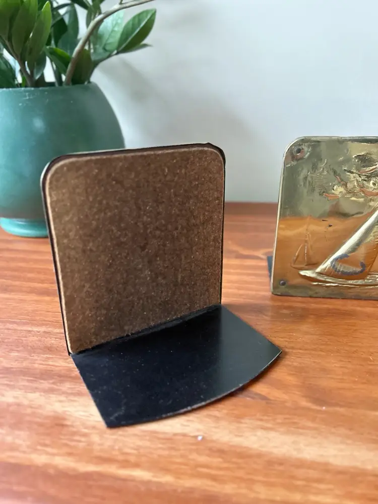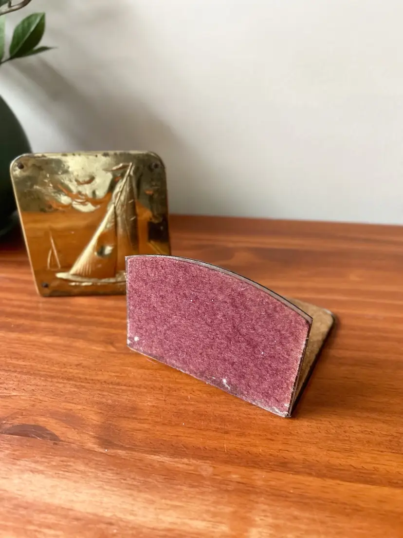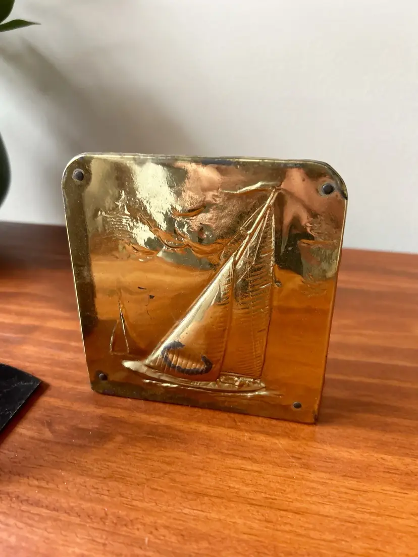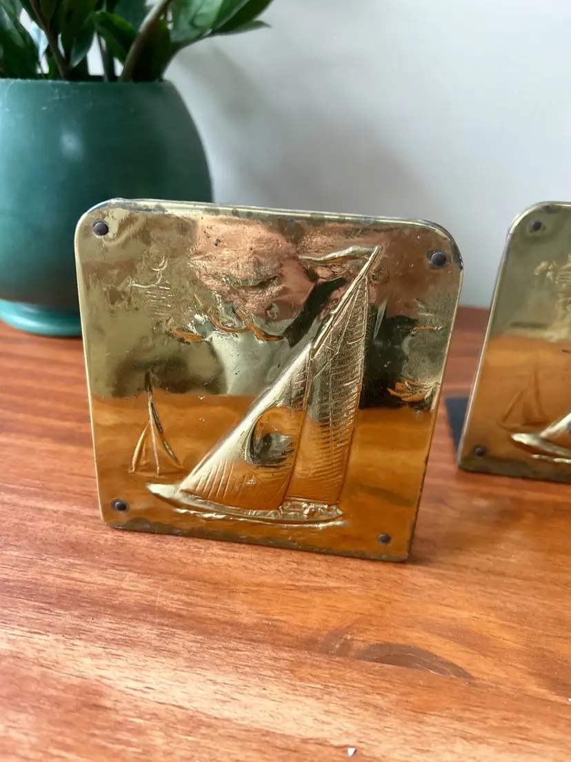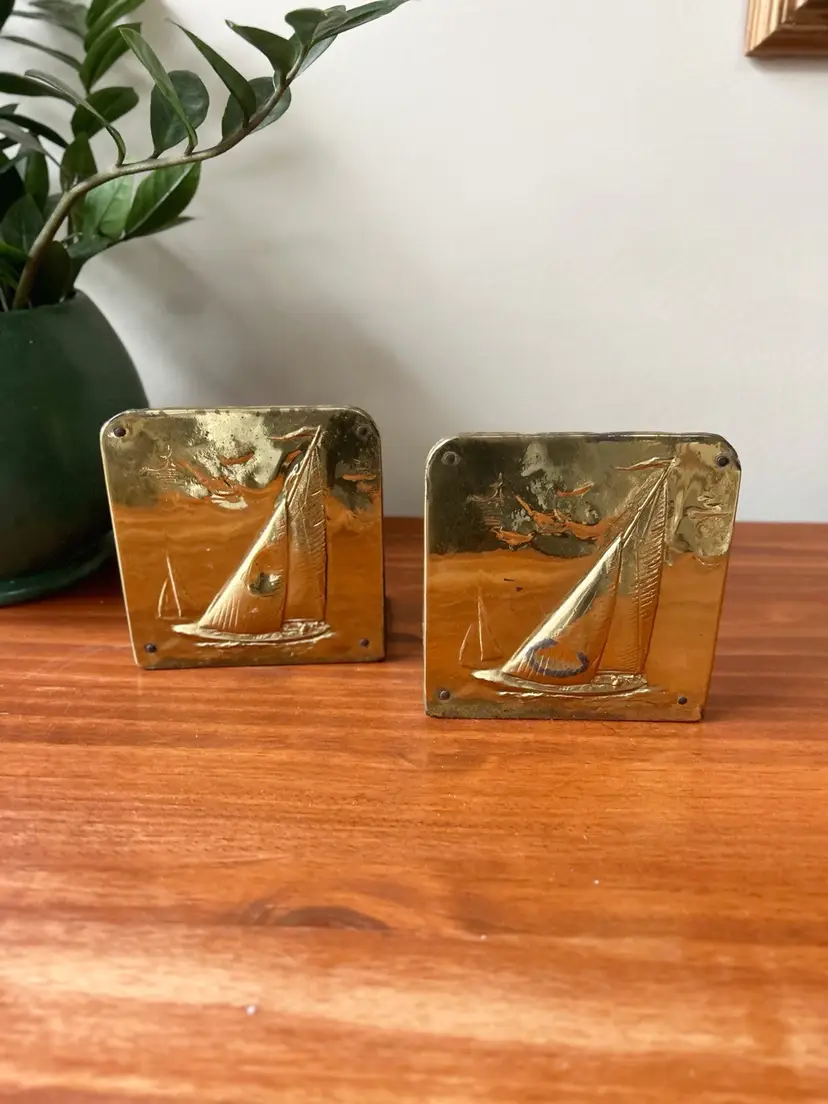 Vintage brass sailboat bookends. Measures 5 inches tall.