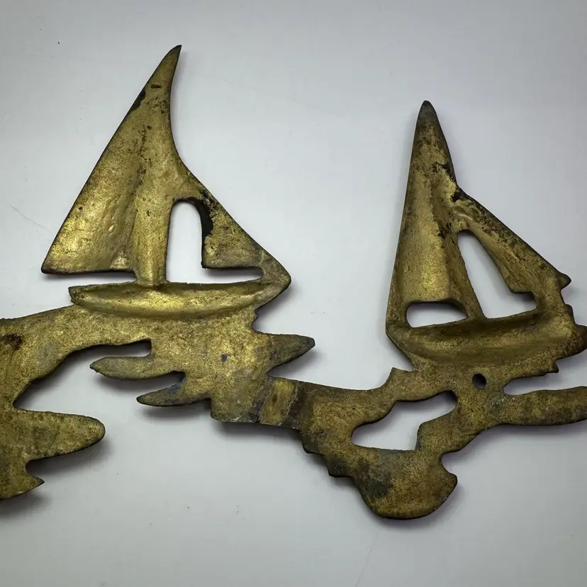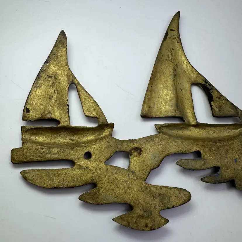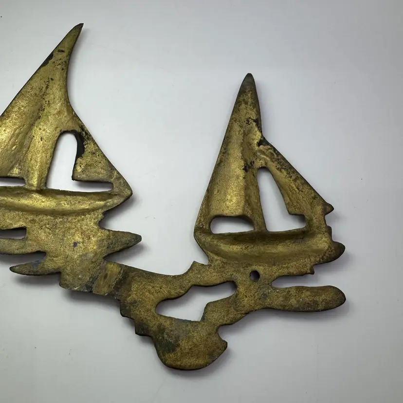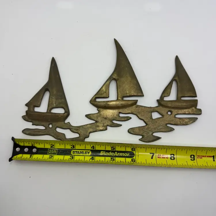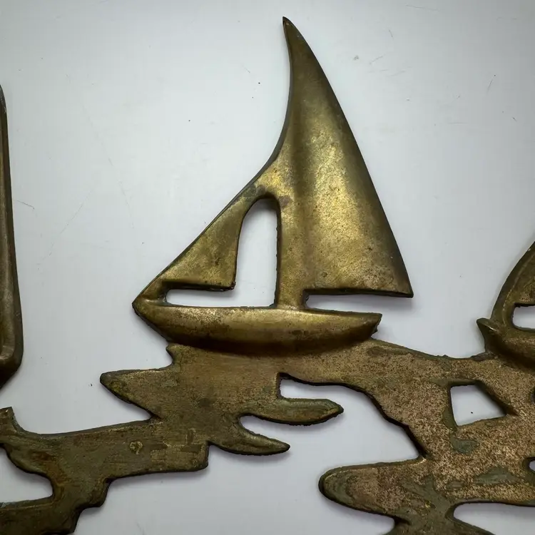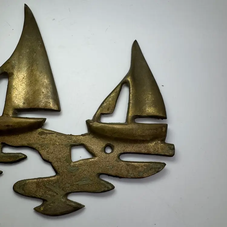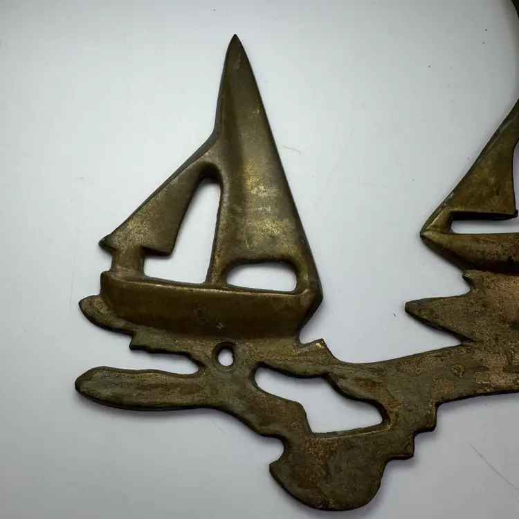 Vintage Brass Sailboats On Water Wall Sculpture Beach House Nautical 9.25”x6”