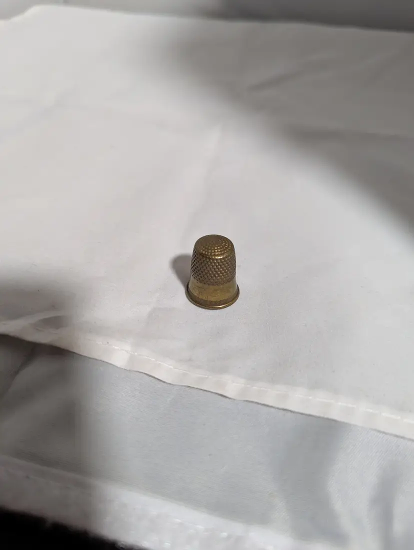 Classic brass thimble, perfect for sewing enthusiasts or collectors of vintage sewing tools. A charming piece of history for your collection.