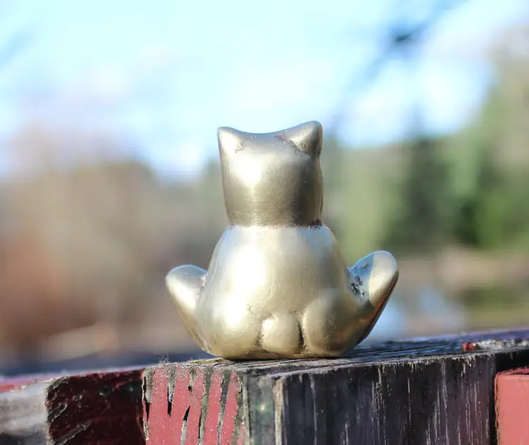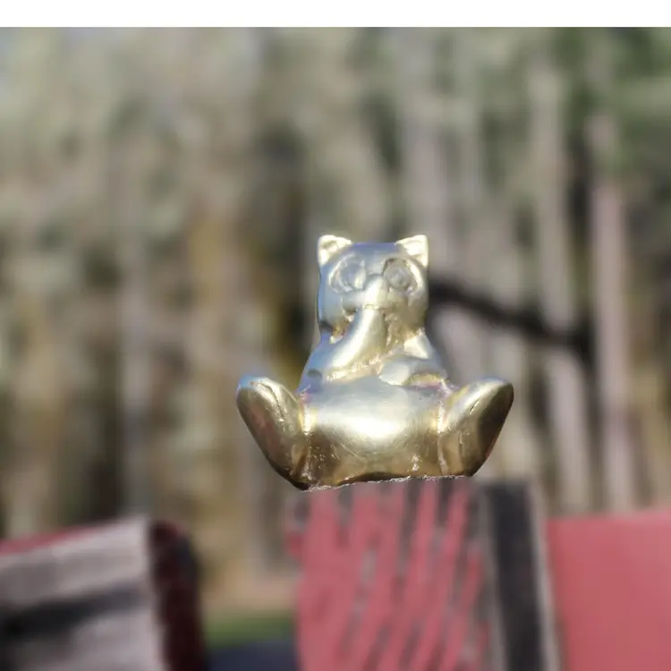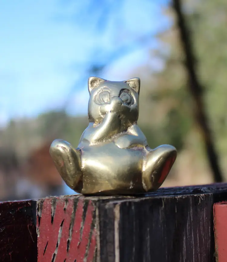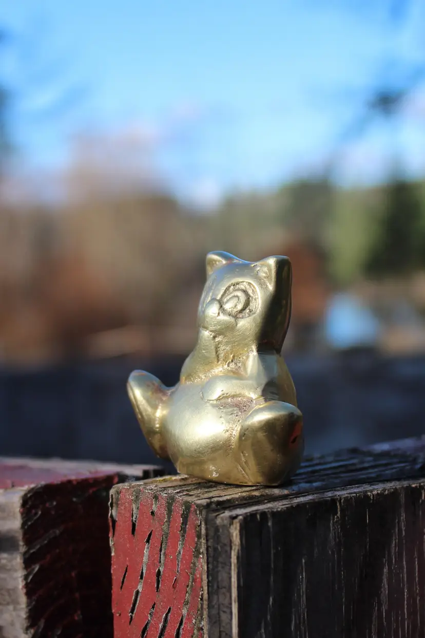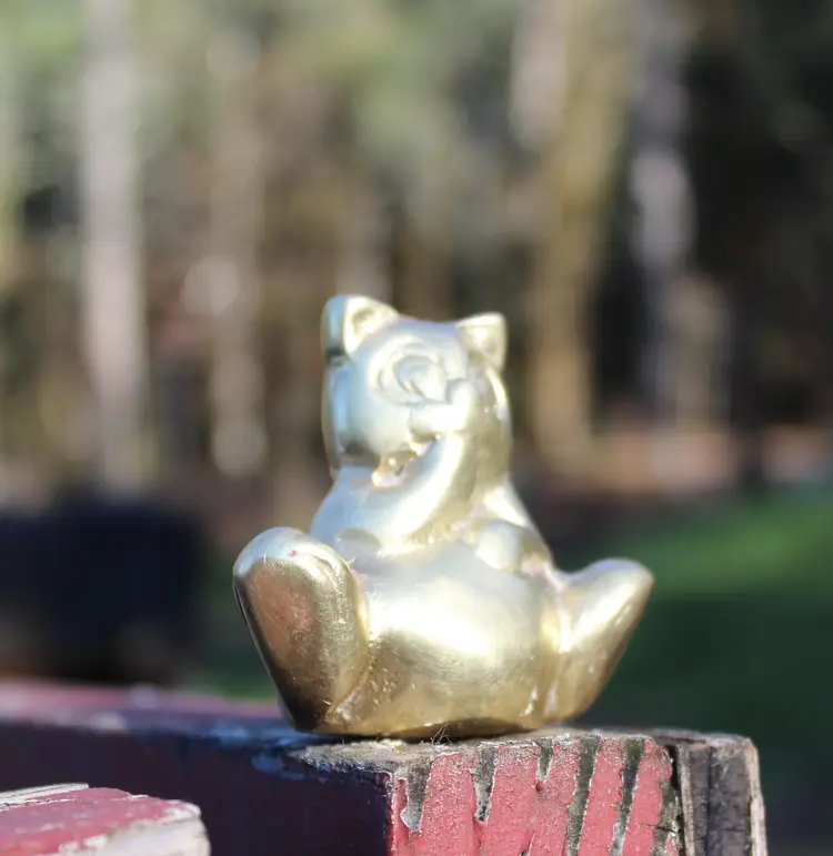 Add a touch of whimsy to your desk or bookshelf with this adorable Vintage Brass teddy bear Figurine. Perfect as a charming paperweight or a cute decorative piece for any bear lover's collection. This little dude has a lovely patina that only time can bestow, giving it character. It's the vintage find that's been hand cleaned and is ready to grace your space. Please view all photos for a closer look at this quaint collectible's details and condition.