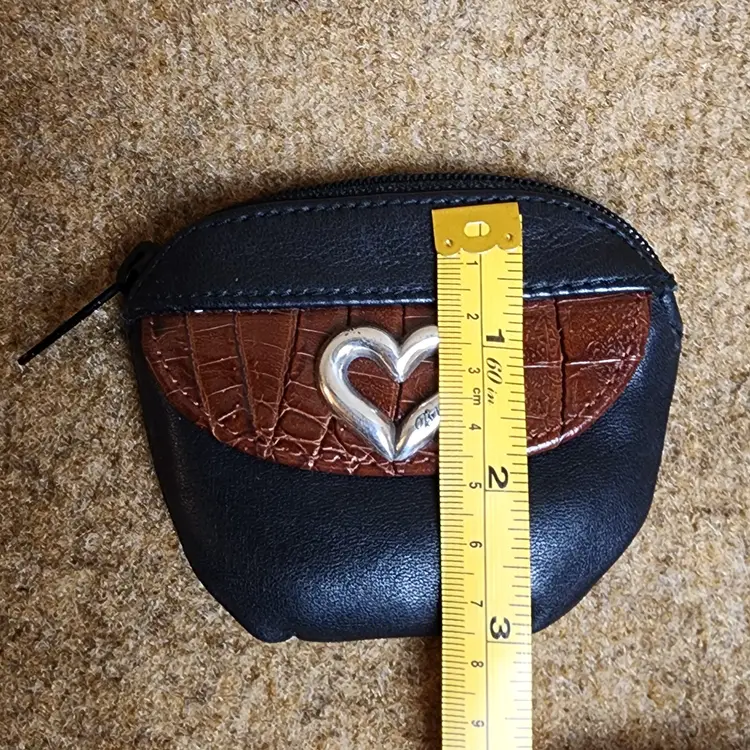 Vintage Brighton Small Leather Coin Change Purse Black/Brown Heart Logo Wallet (JEWL-079) CONDITION: Pre-owned SIZE: Small COLOR: Black/Brown STYLE: Coin Purse CLOSURE: Zip WIDTH: 4” HEIGHT: 3” The measurements listed are the only measurements that will be taken.