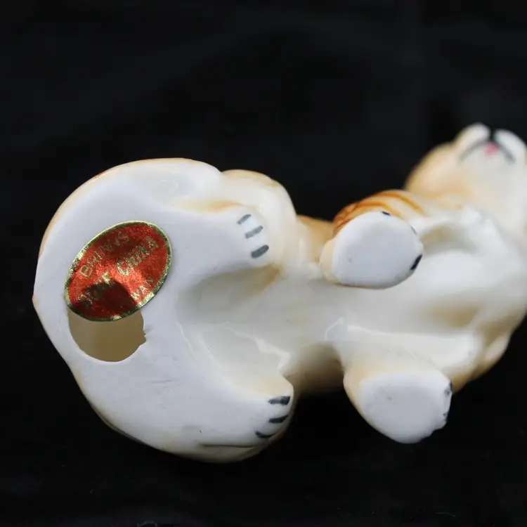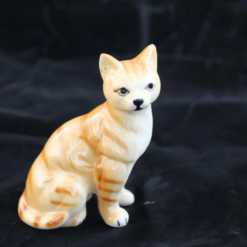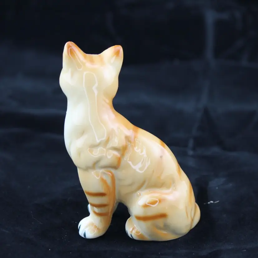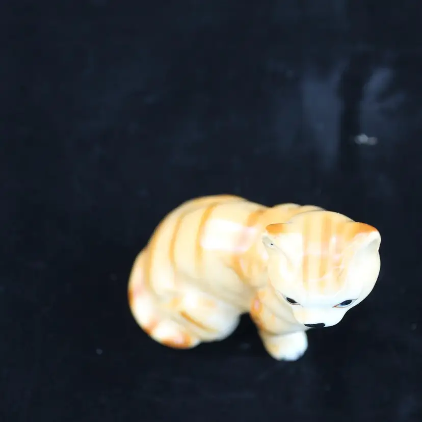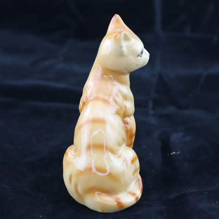 This is a vintage Brinns Bone China Orange Tabby Cat figure. There are no chips or cracks. It measures approx. 3 3/8" tall, 2 1/4" side to side and 1 1/2" front to back.