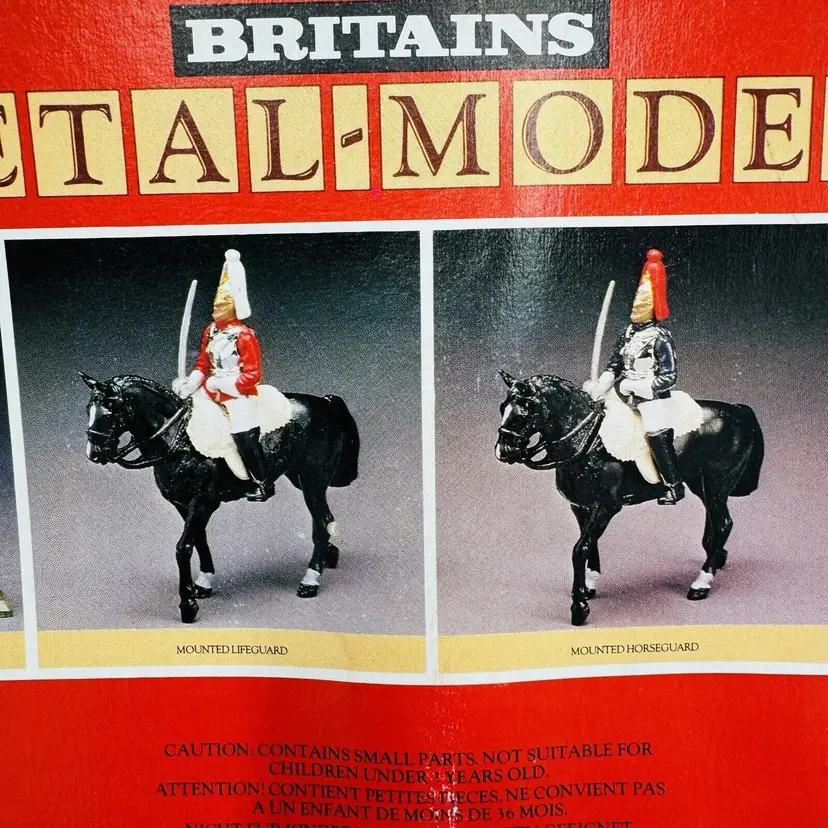 Brand: Britains Type: Mounted Soldier Horse Year: 1984 Soldier Type: Mounted Lifeguard British Material: Metal Gender: Boys & Girls Country/Region of Manufacture: United Kingdom