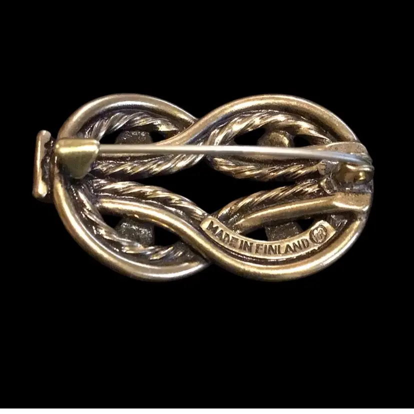 Maker ‘Kalevala Kuru’ 1950s, 1-1/4”x 3/4”. Marked ‘made in Finland KK’. Maker is a pioneer in jewelry making since 1937 & still in business today. #397