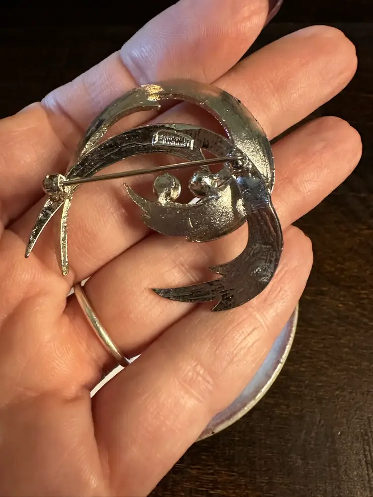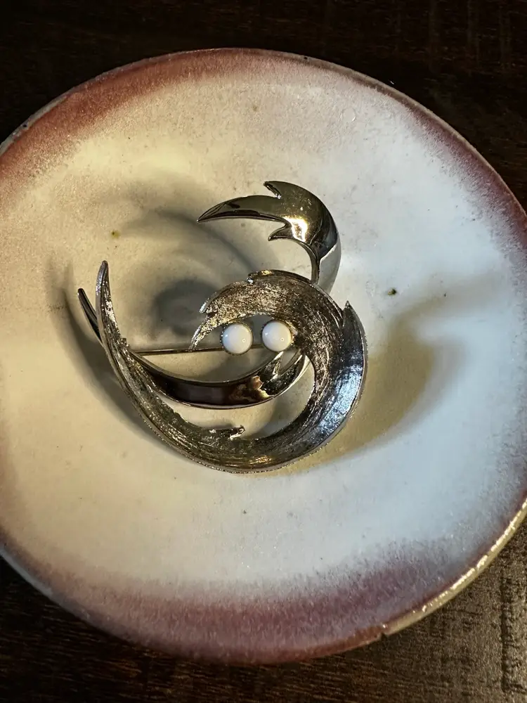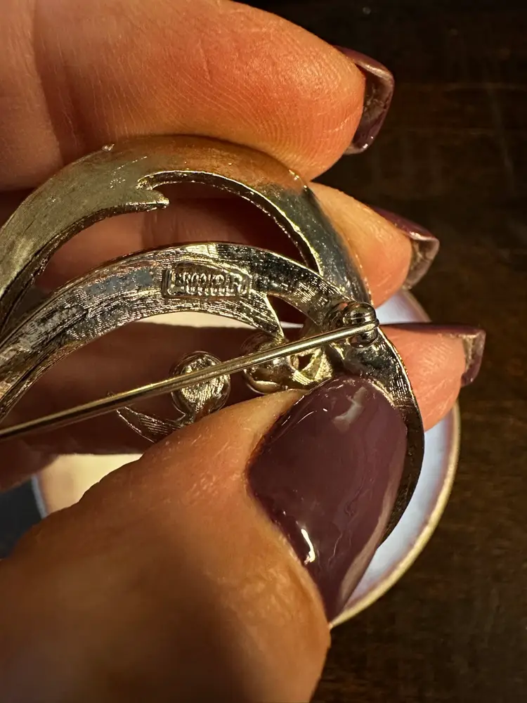 Vintage Brookraft Silver Tone Faux Pearls Brooch Pin