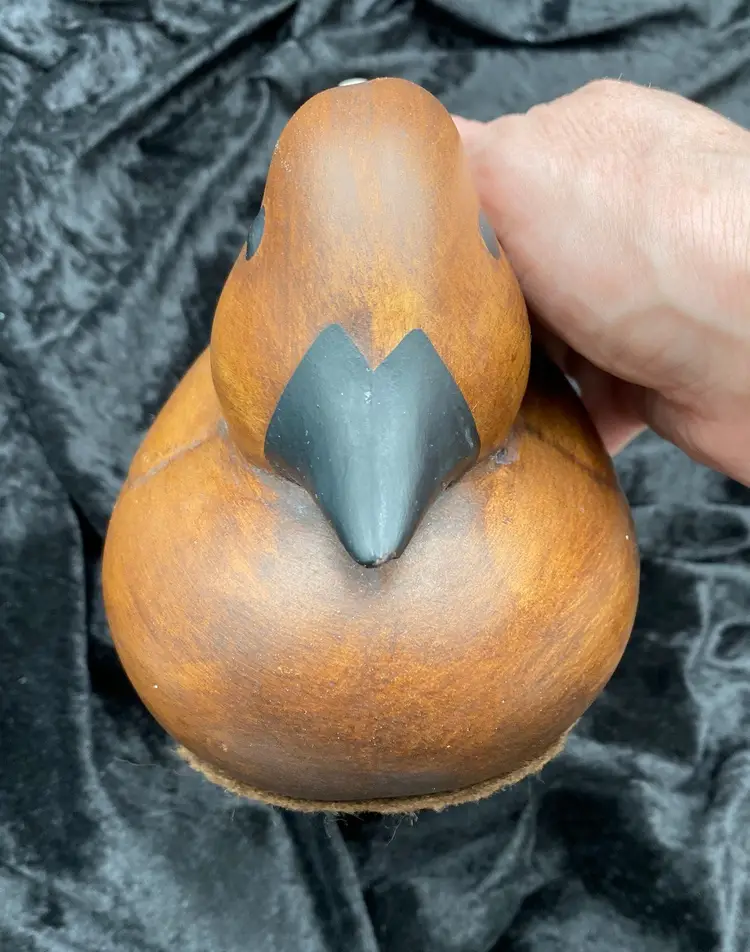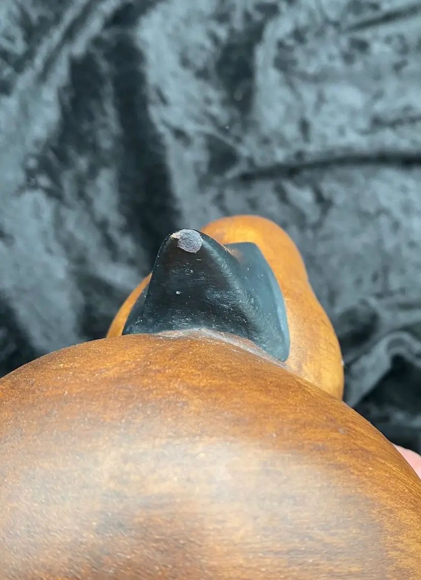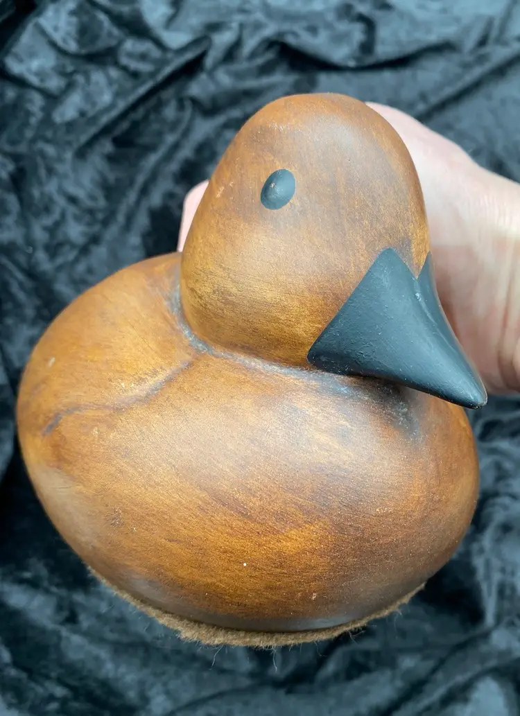 The duck is in very good used condition. There are no cracks. There is a chip on the underside of the beak that has been painted.
