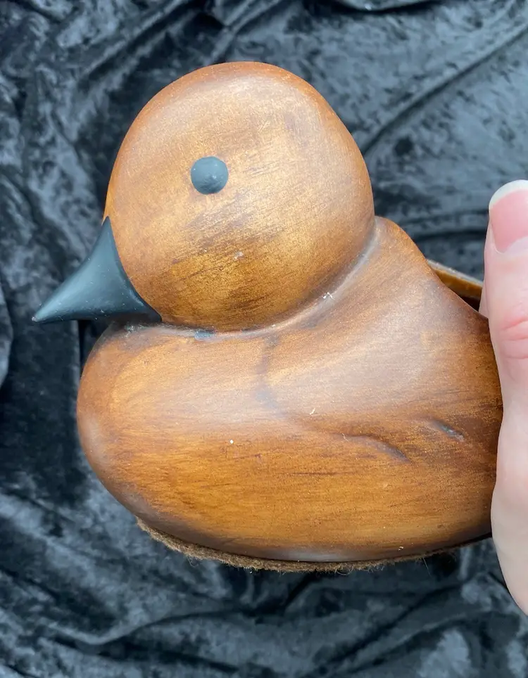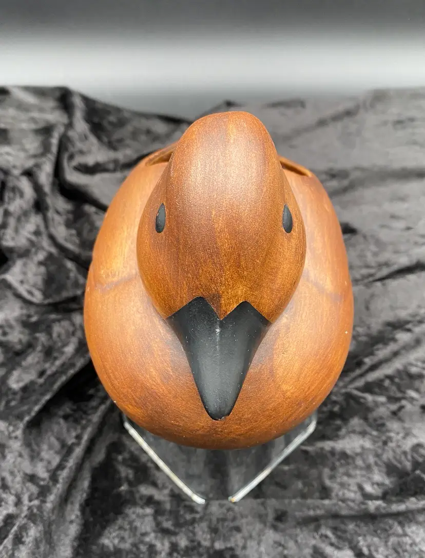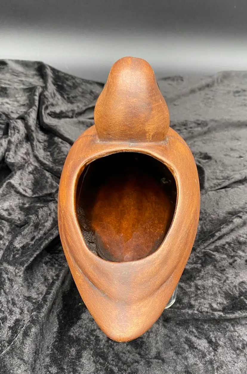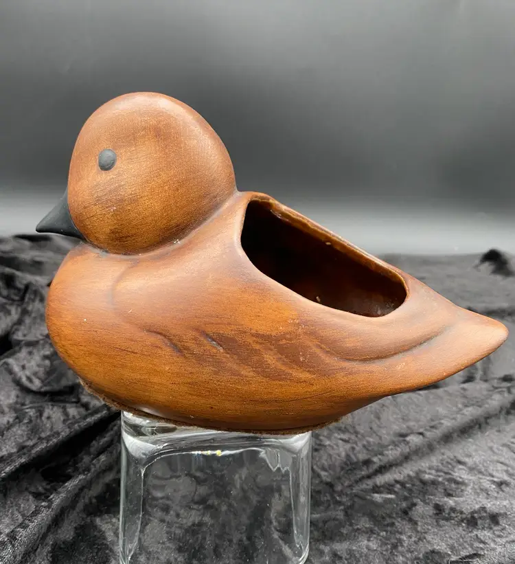 Add a touch of vintage charm to any room with this adorable brown ceramic duck planter. Measuring 8 inches in length and 4.7 inches in height, this medium-sized planter features an oval shape and a felted bottom for added stability. The internally glazed finish gives it a finished look, while the matte finish adds a touch of elegance. Perfect for all occasions, this 1970s-style planter is an original piece that will add a touch of whimsy to any decor. Whether you're a collector of animal-themed items or simply looking for a unique addition to your home, this duck planter is sure to delight.