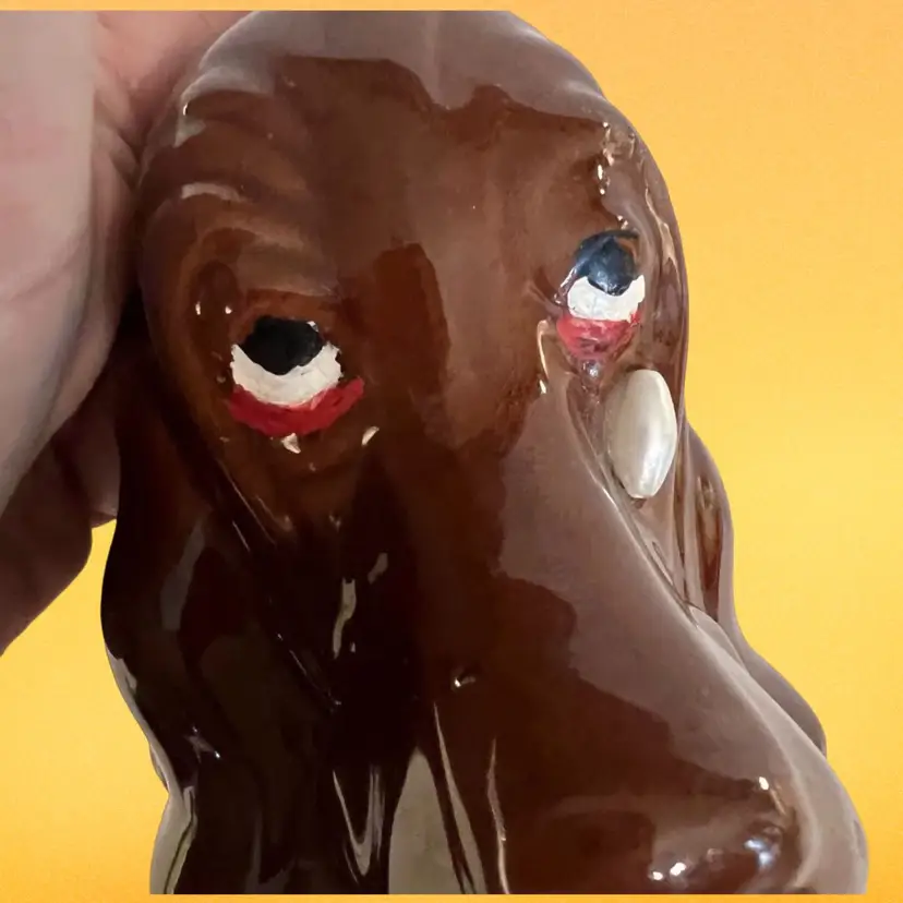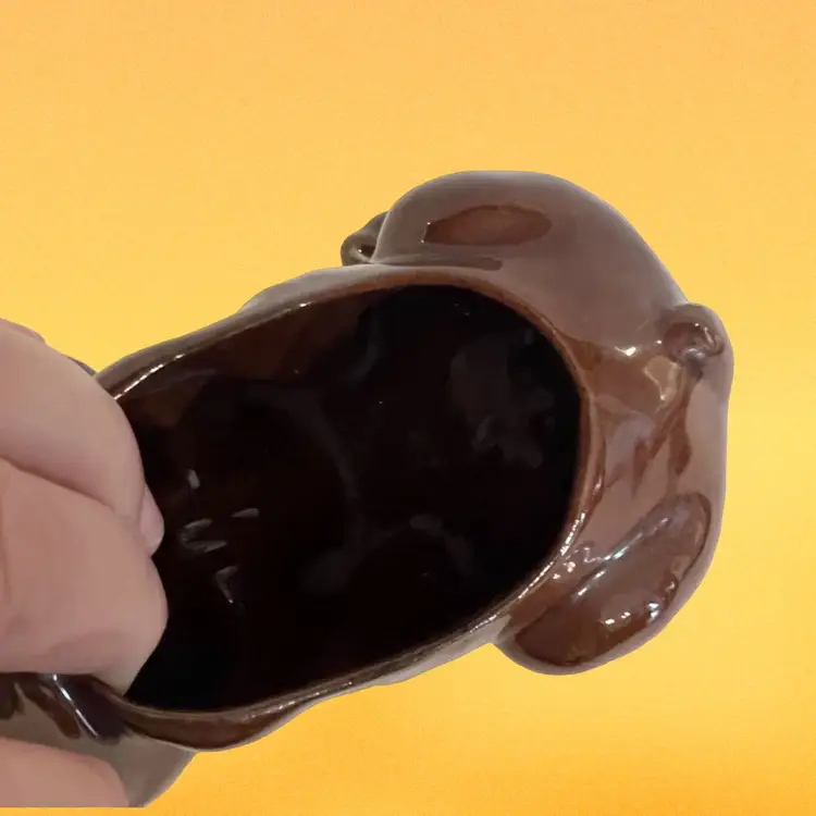Vintage brown hound dog Tear Drop ceramic flower pot Sad Puppy Planter. Vintage Ceramic Some marks It’s old Approximately 5.5” tall