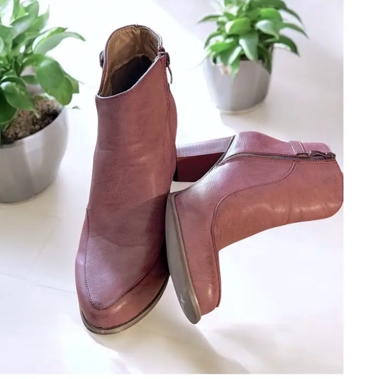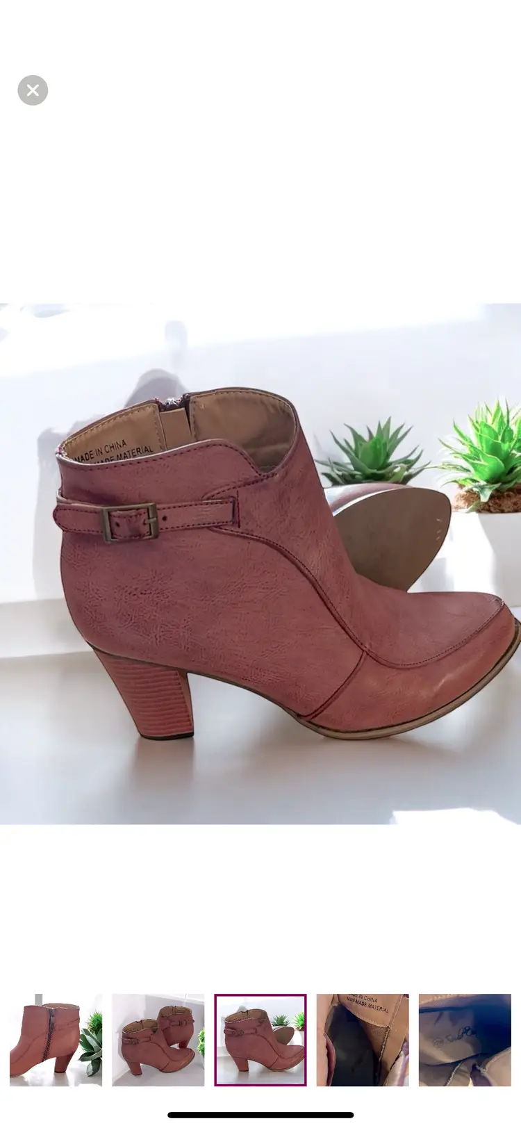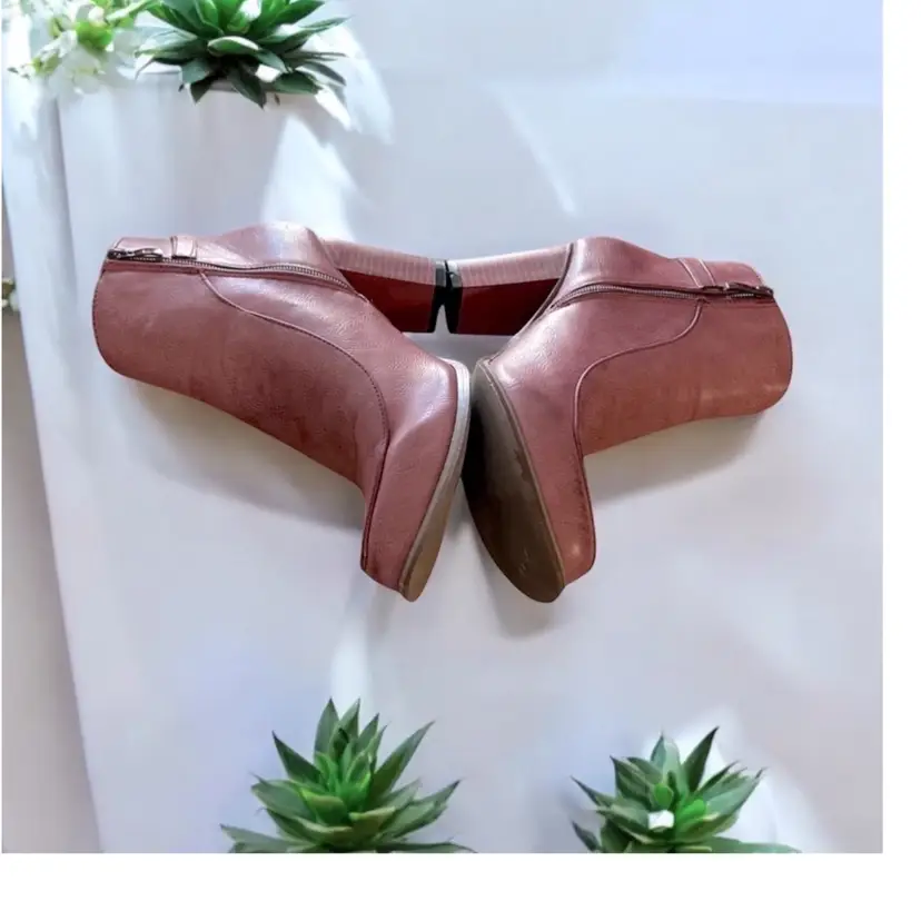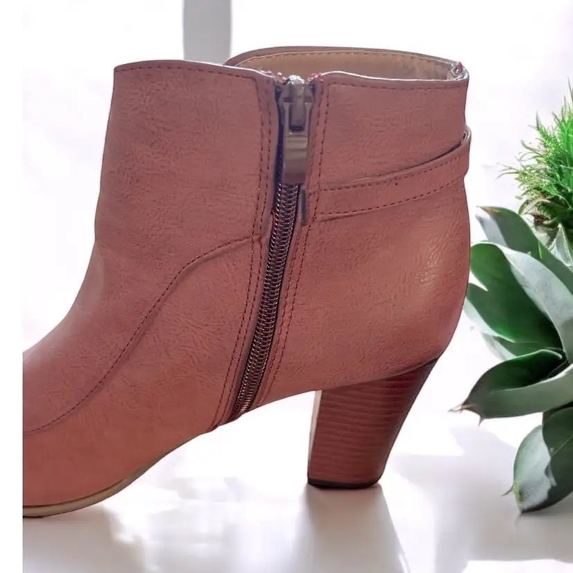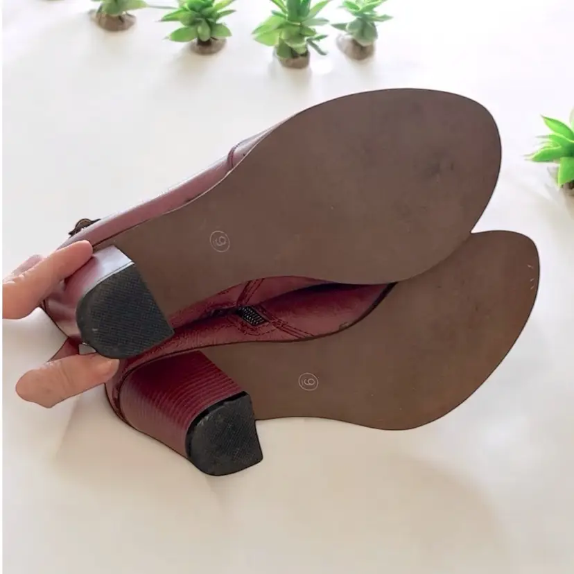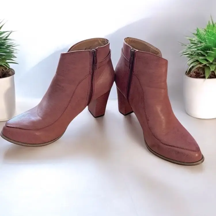 Sould Out Women's Ankle Heeled Boots Brown Leather Ankle Boot with Side Zipper Selling this stylish women's brown leather ankle boot in excellent condition. It has a chic high heel, side zipper, and decorative strap with a brass buckle. perfect for elevating any outfit. Please see picture for wear still have life to the boots