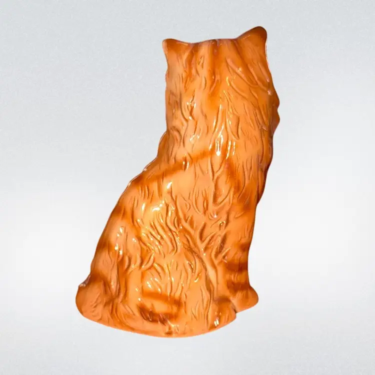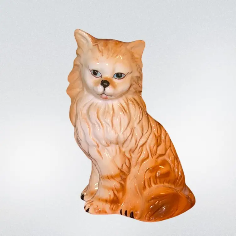 Vintage Brown/Orange Striped Long Haired Cat Bone China Figurine 3.5" tall