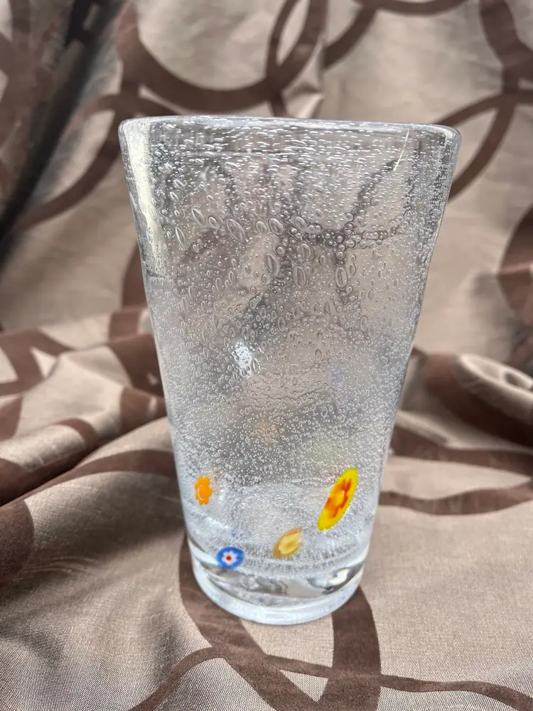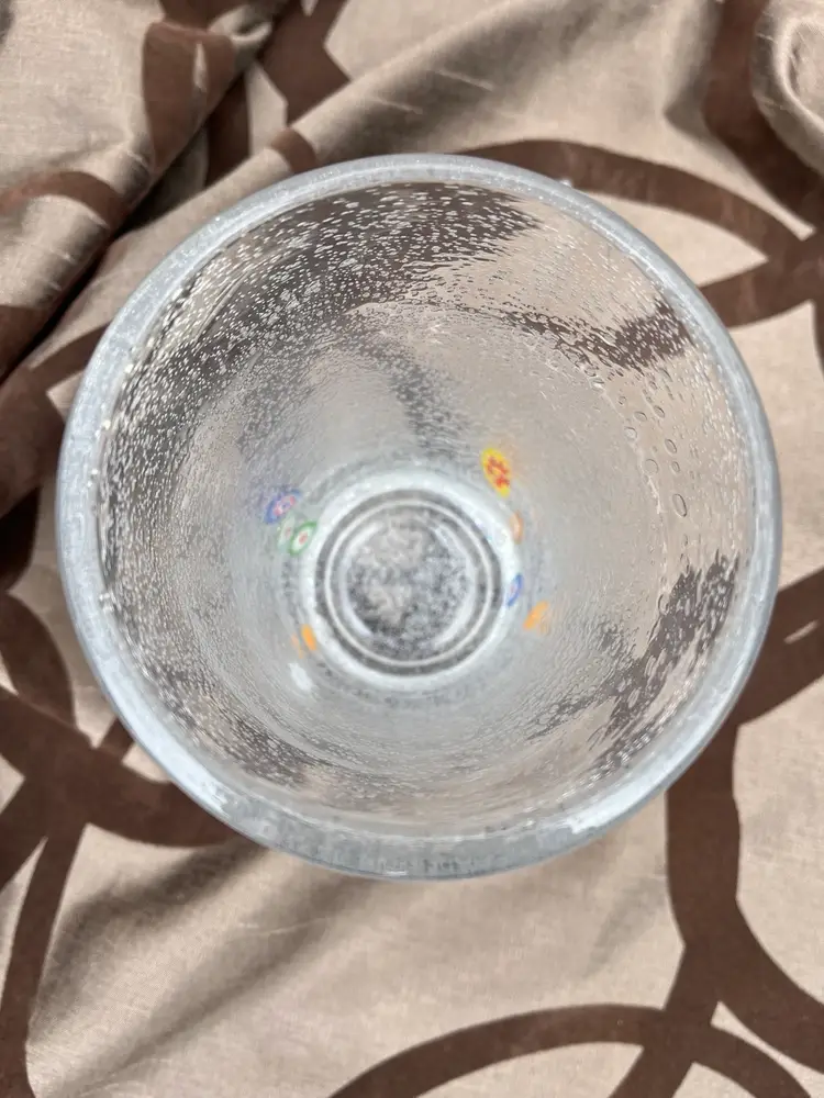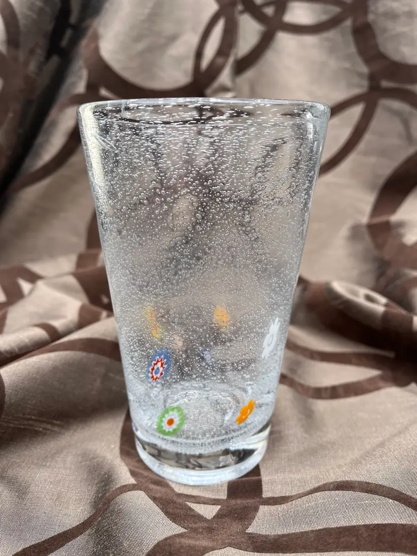 Super fun bubble pint glass! It’s 6” of fun with a 3.5” mouth to take in all of your mixed drink ideas! It has a textured bubbly finish on the inside. Outside is smooth. No chips or cracks. Very quirky!