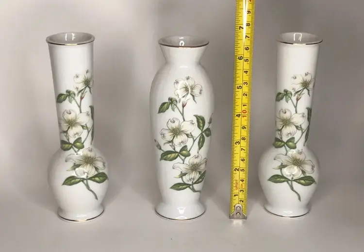 Set Of Three Lefton China Bud Vases #02870 Hand Painted Japan. Condition is Used. No chips or cracks. There is a manufacturer defect on the lip of one vase. Exquisite condition and beautiful detail.