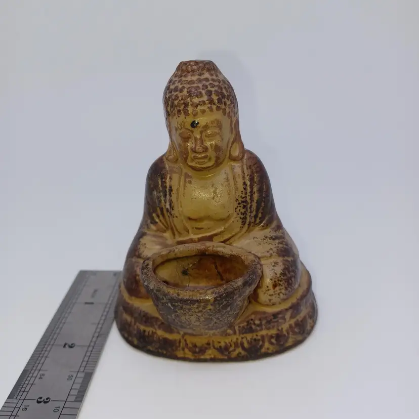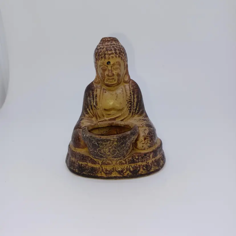 Vintage ceramic Buddha incense burner Nice 4 inch tall Buddha Is in great vintage condition has a made in Taiwan Republic of China sticker on the bottom and the remnants of an exceedingly old Kmart sticker Don't believe this has ever been used please see all pictures as they are the best description all items from a smoke-free home with pets experienced fragile shipper