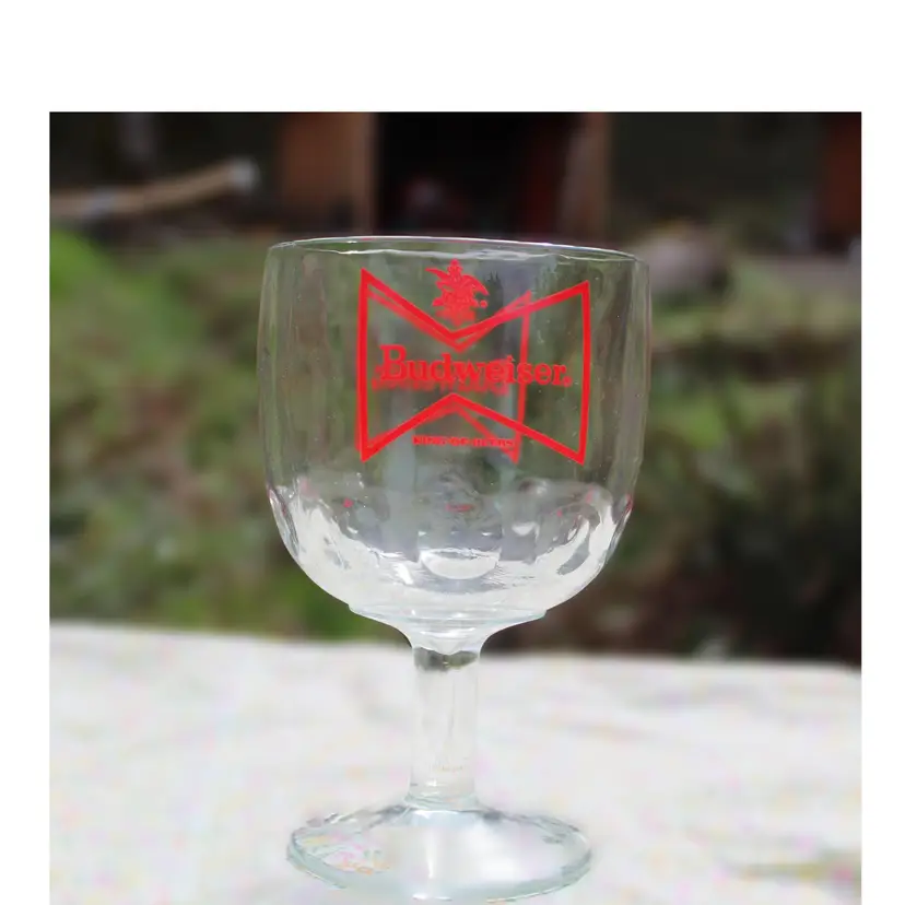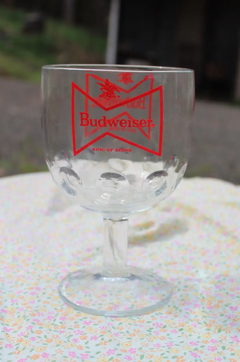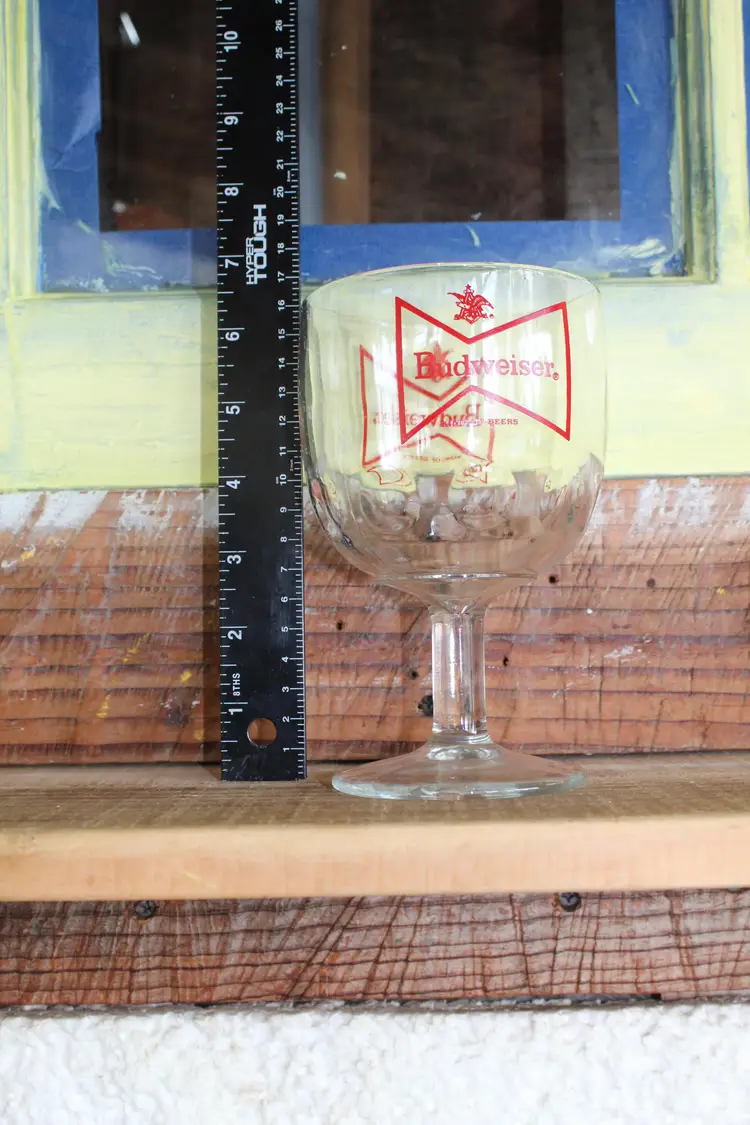 Step back in time with this vintage Budweiser chalice glass, featuring the iconic red bowtie logo. Perfect for beer enthusiasts and collectors of breweriana, this glass adds a touch of nostalgia to any barware collection. The sturdy design ensures it’s great for everyday use or as a display piece. Please view all photos for a closer look at this pre-owned treasure.