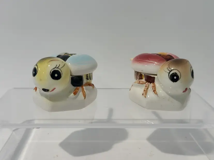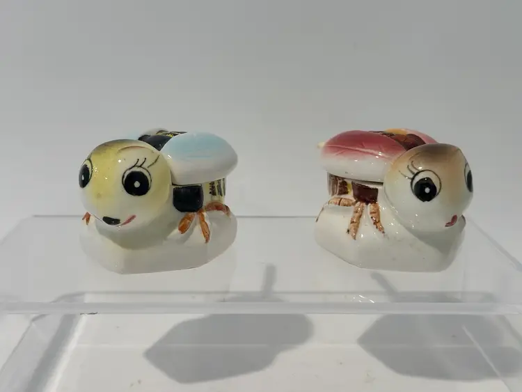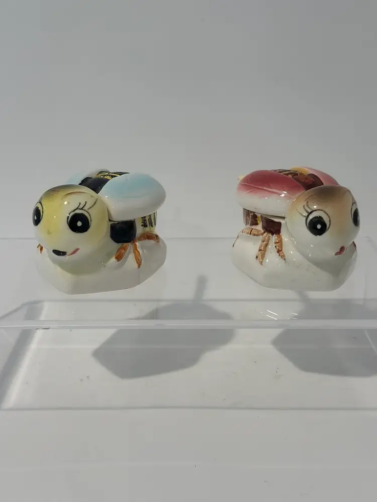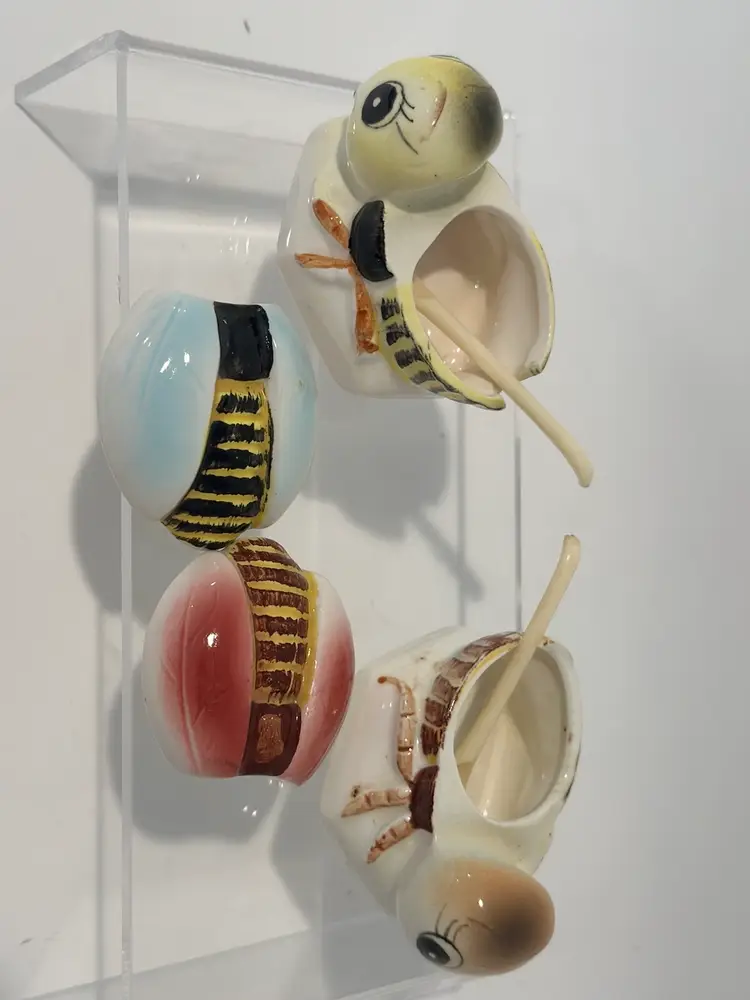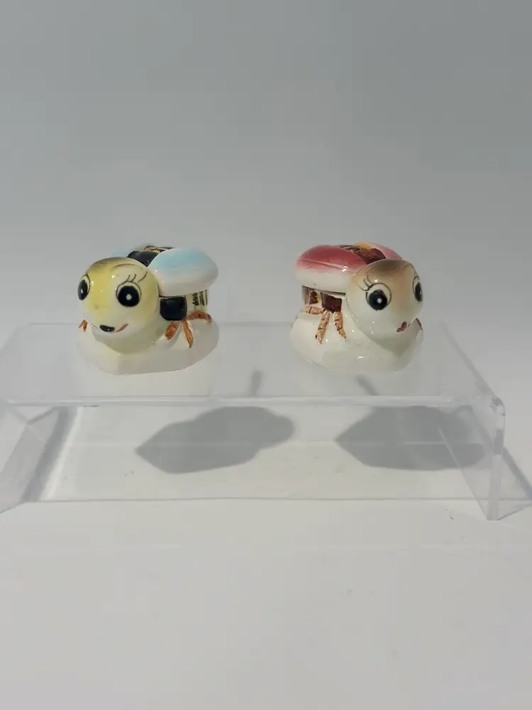 Condition: chipping on paint on pink bee. Slight crack in back if blue bee.