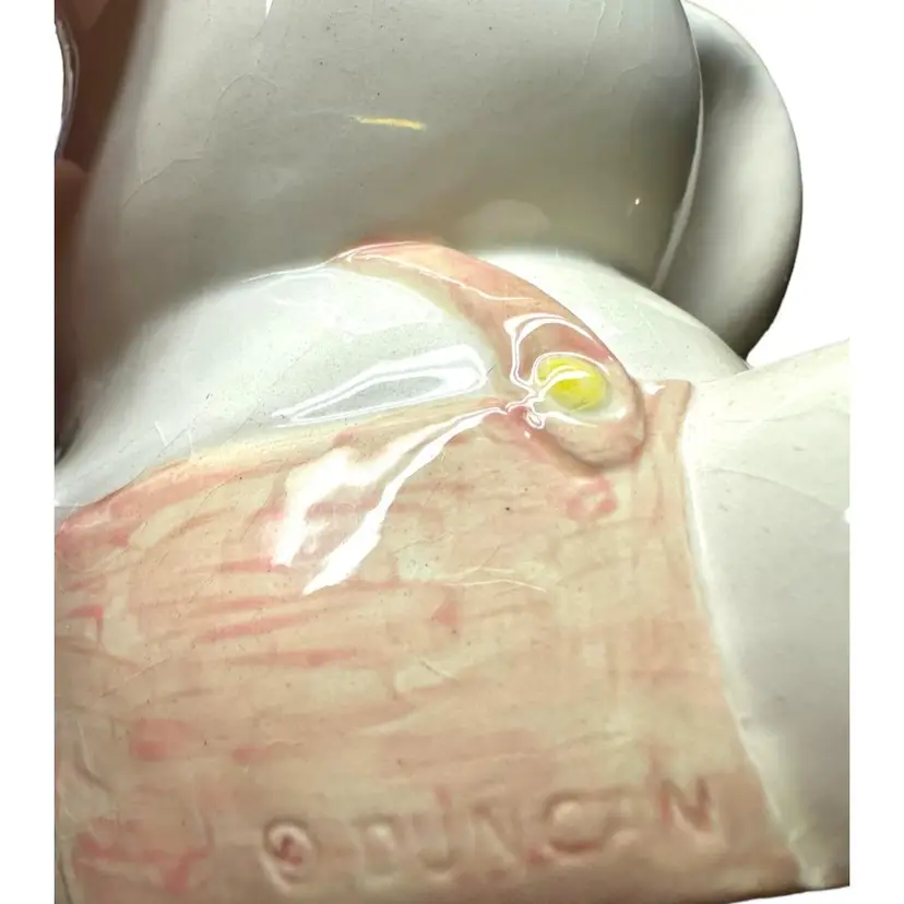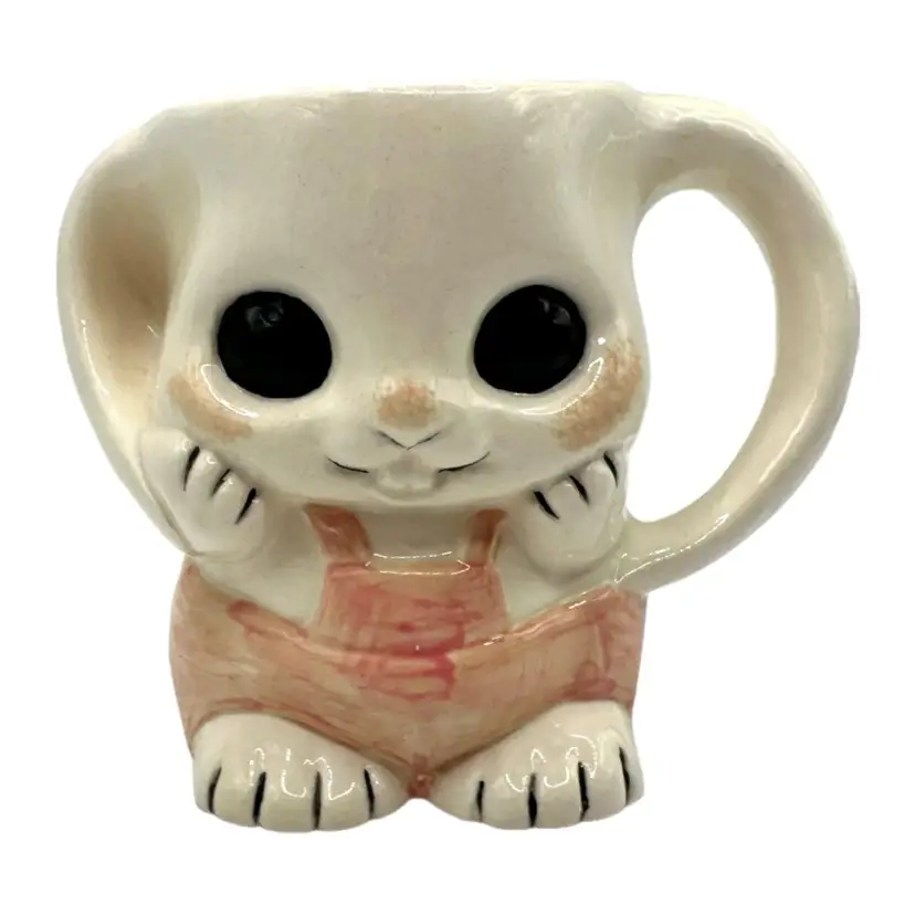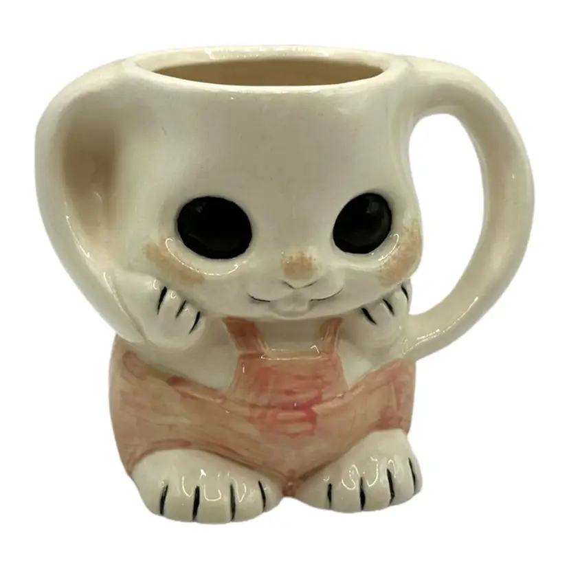This listing is for a vintage bunny mug from 1983 Duncan Enterprises. Measures 3-3/4" tall and 2" across the opening. Cute mug that could also be a small planter. no chips or cracks, some crazing.