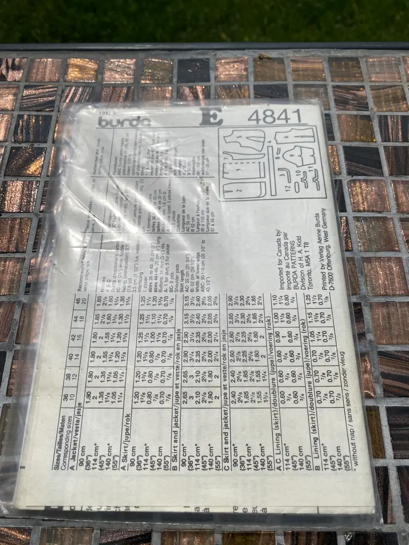 Has instructions and cutting layout intact, not used. Still sealed in plastic not opened.