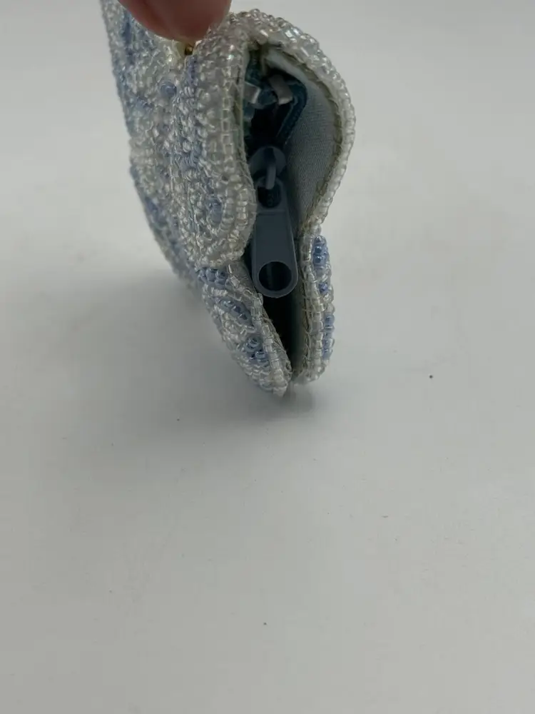 Beautifully blue beaded butterfly with coin compartment and keychain