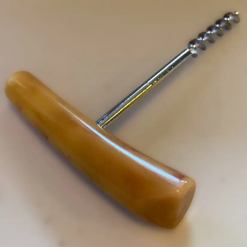 This vintage Butterscotch Bakelite corkscrew is an excellent vintage condition. I tested this corkscrew using Simichrome polish to confirm that it is in fact Bakelite.
