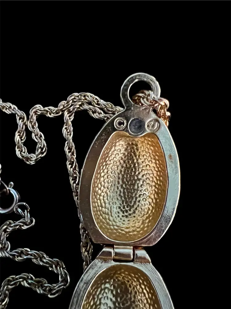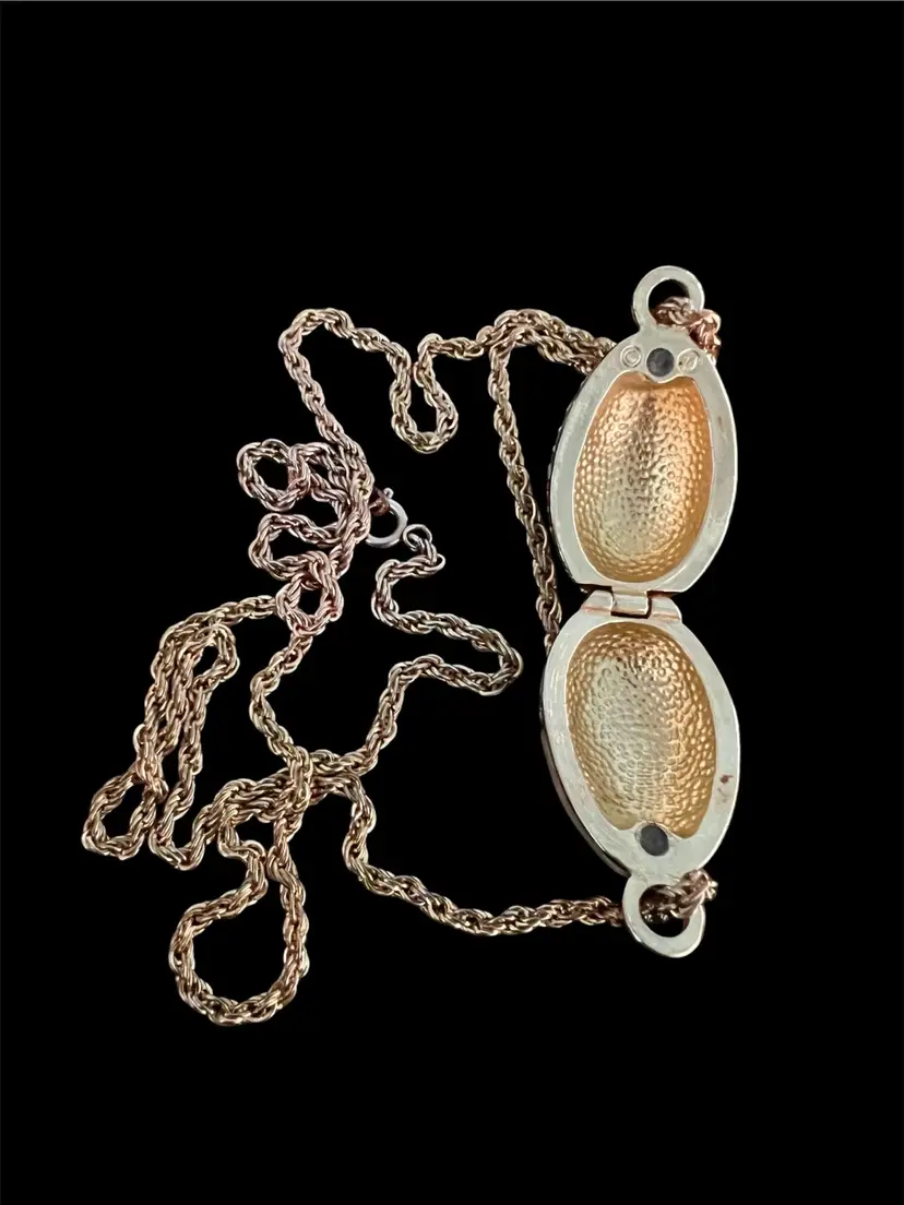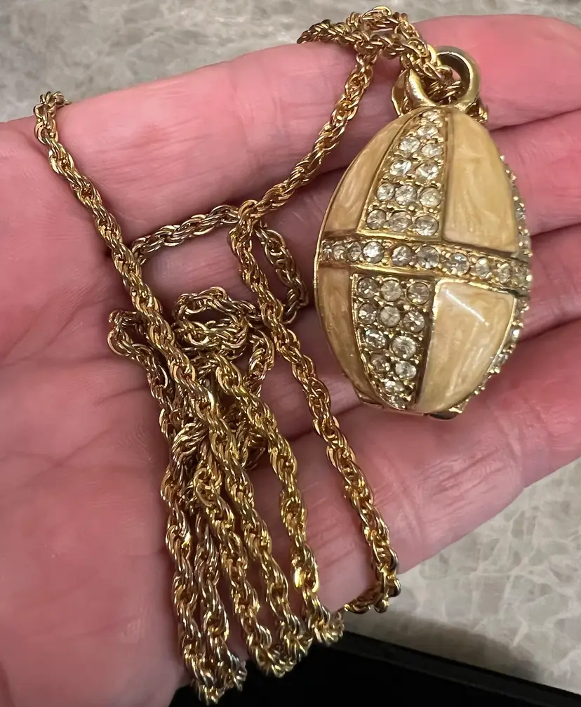 Vintage Butterscotch Enamel SWAROVSKI Goldtone & Crystal Egg Pendant Necklace