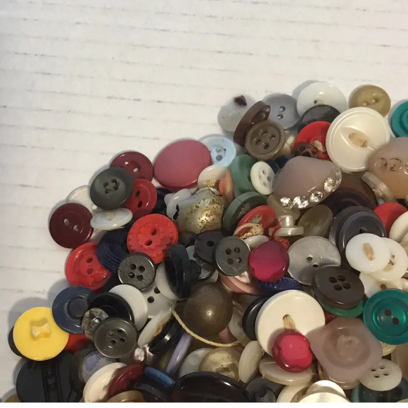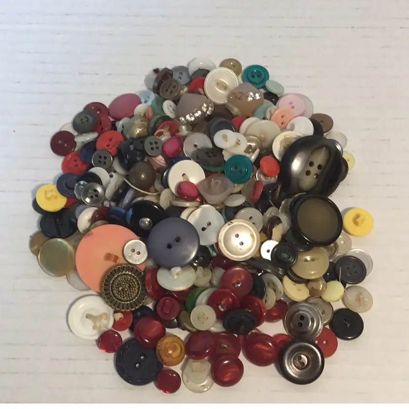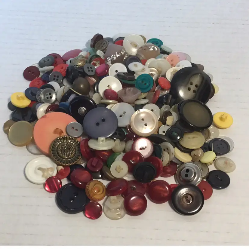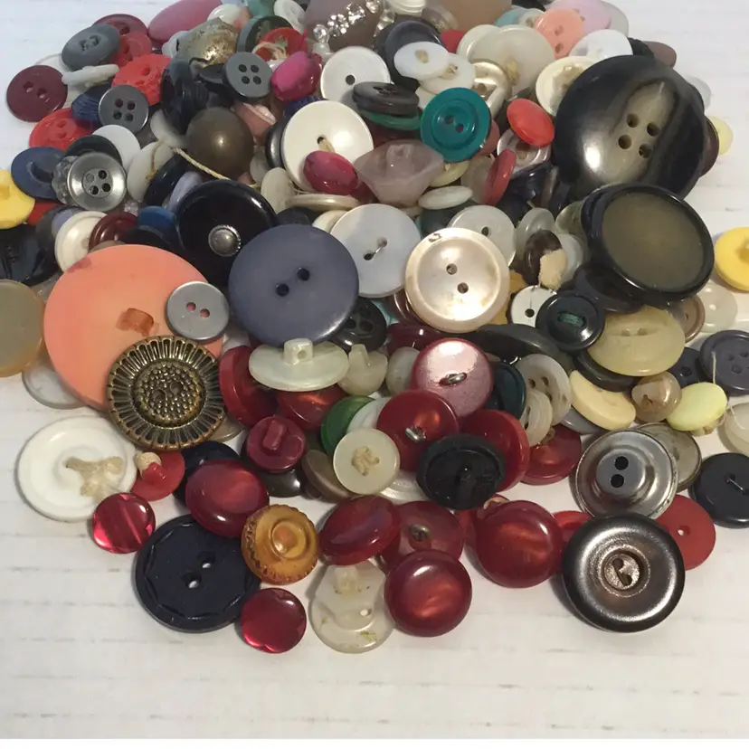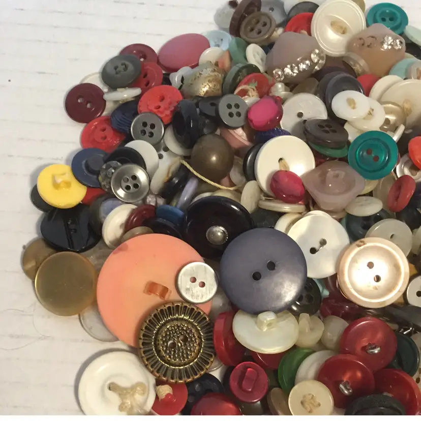 Vintage buttons by the bag for your crafting and/or sewing projects. You get all buttons seen in the pictures. Approximately 6oz of button loveliness. Happy crafting! Shipped wrapped in bubble wrap and in a poly bag. Please note the buttons are from a large lot and bagged into smaller groupings. There may be broken or dirty buttons included.