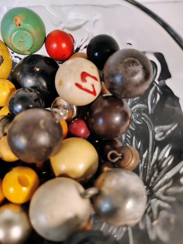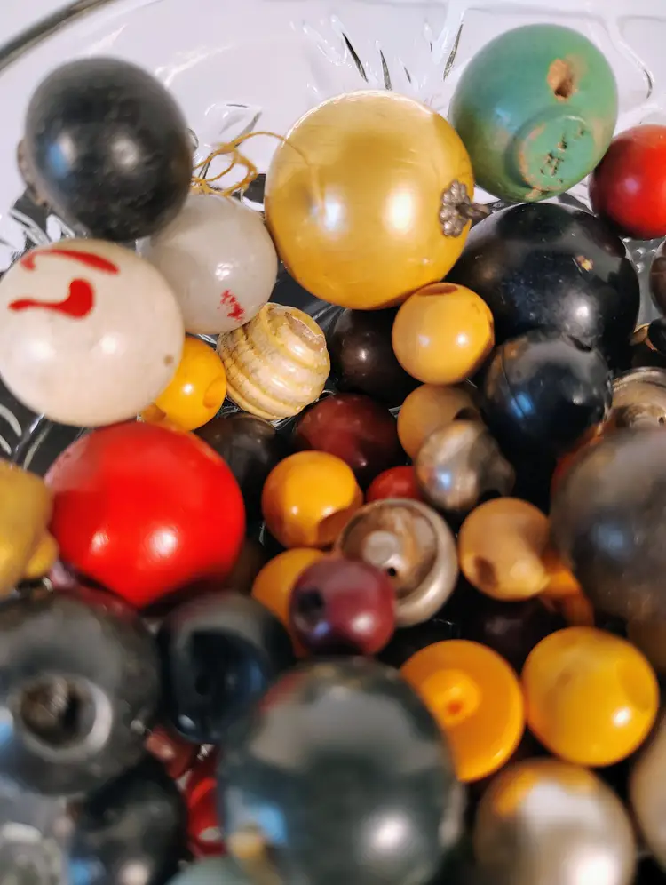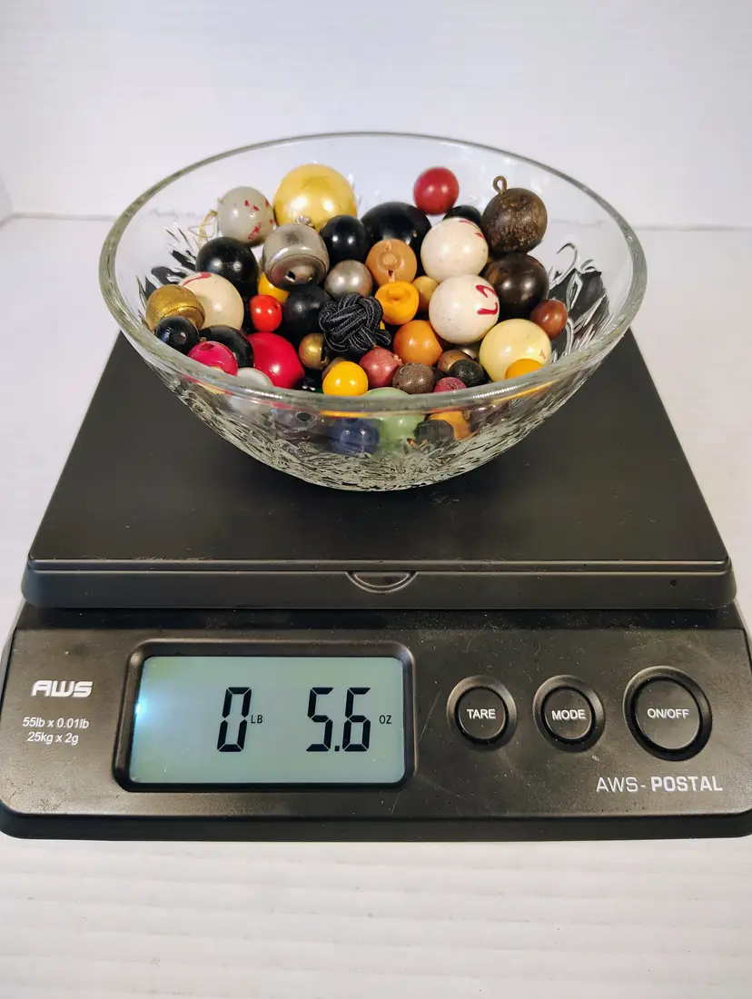 5.6oz of vintage round buttons. There are different sizes and materials. Materials are wood , plastic and metal, not sure if there are any glass in this lot. There's a nice mix for crafting and sewing. Please see pictures for details.