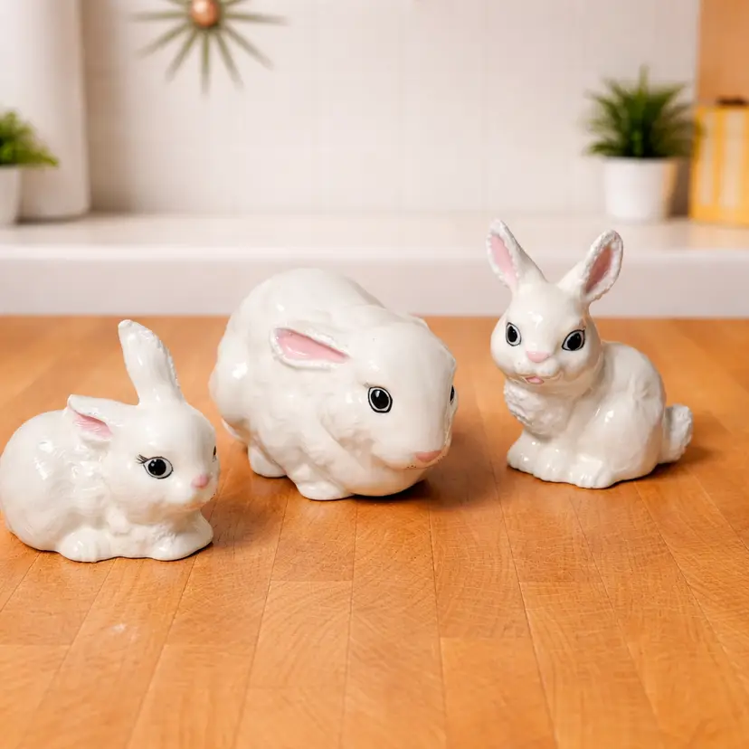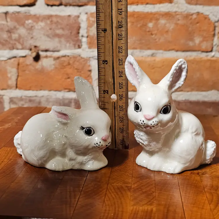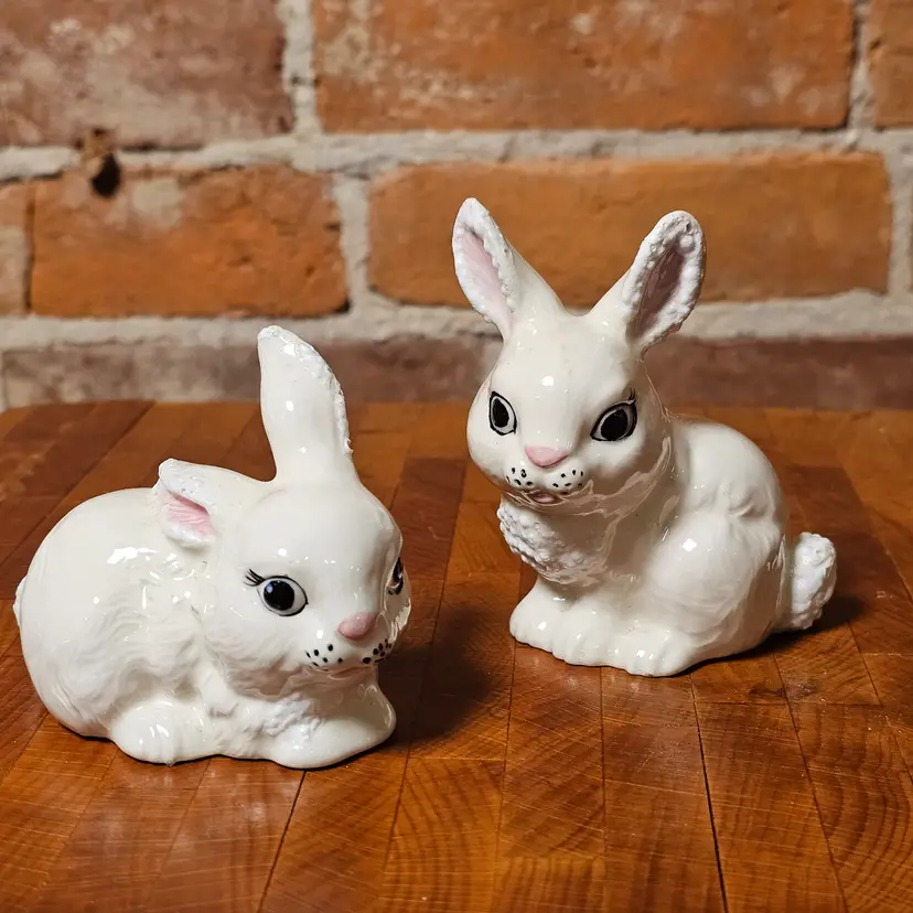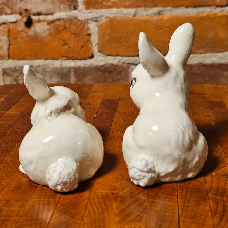 Condition Good vintage condition with light age-related wear. Minor glaze wear and light crazing may be present consistent with vintage hobby ceramics. One bunny has a small flea bite on the ear (see close-up photo). Please review all photos carefully for full condition details.