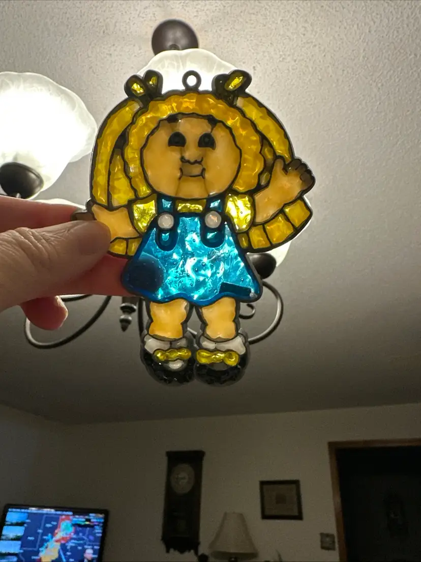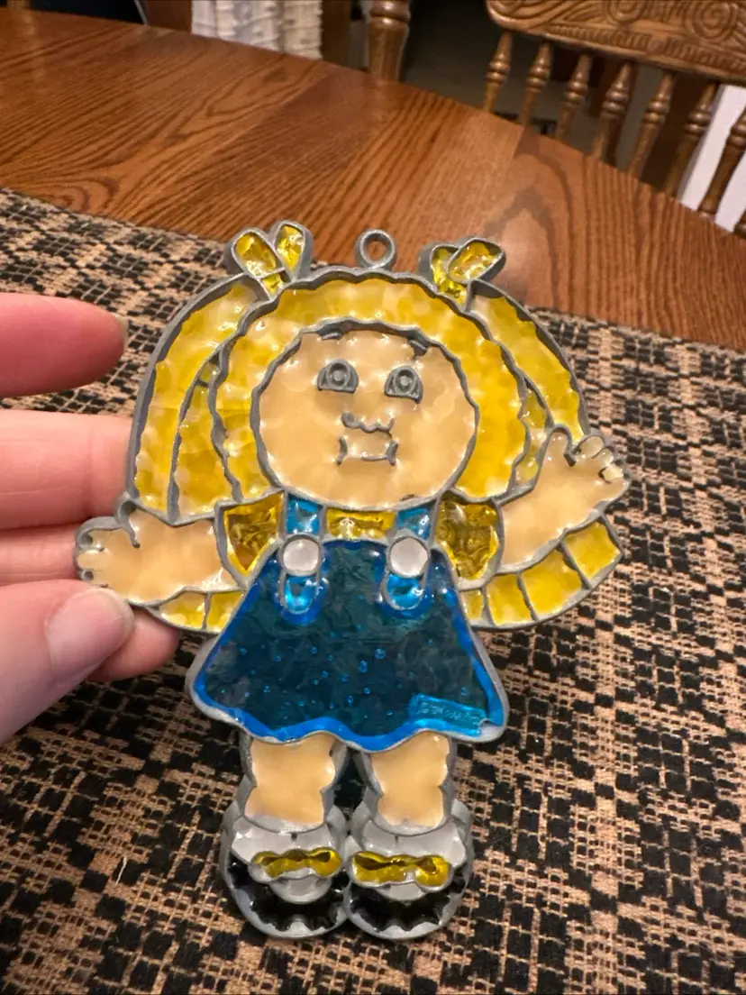 Vintage Cabbage Patch Kid Ornament sun-catcher - Faux Stained Glass-Blonde