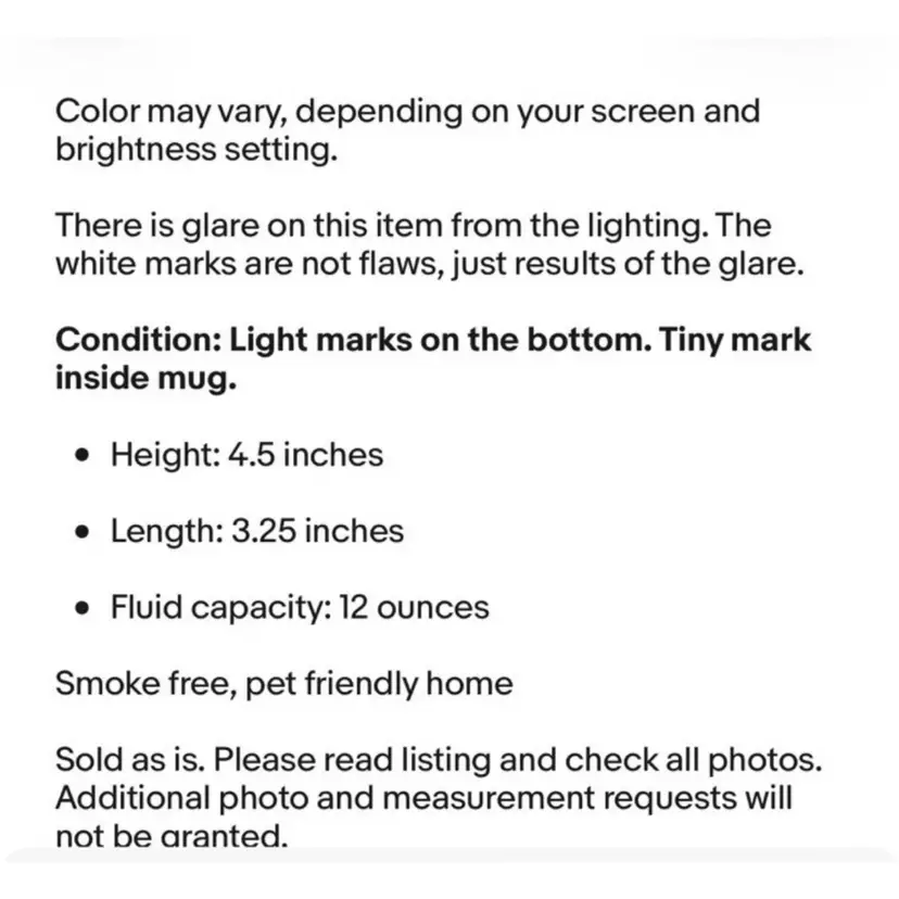 Sold as is. Please read listing and check all photos. Additional photo and measurement requests will not be granted.