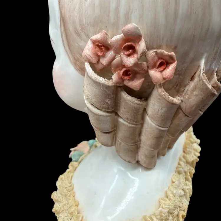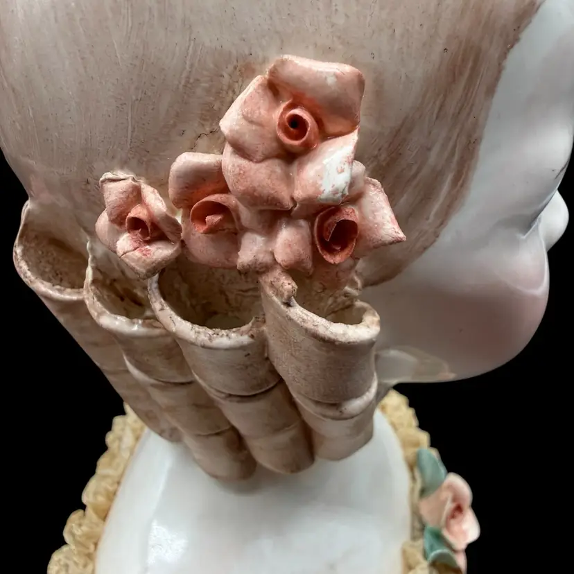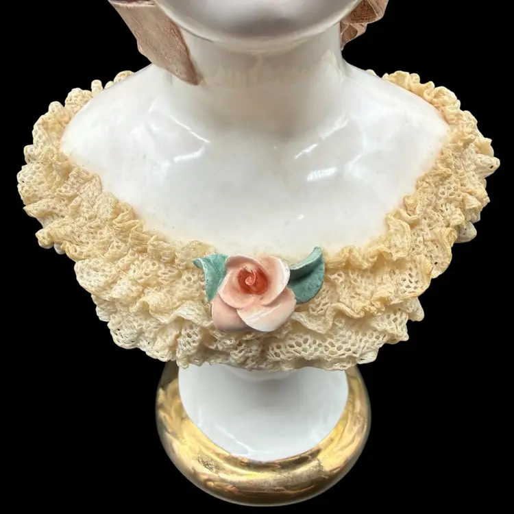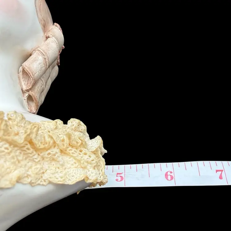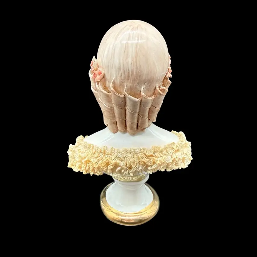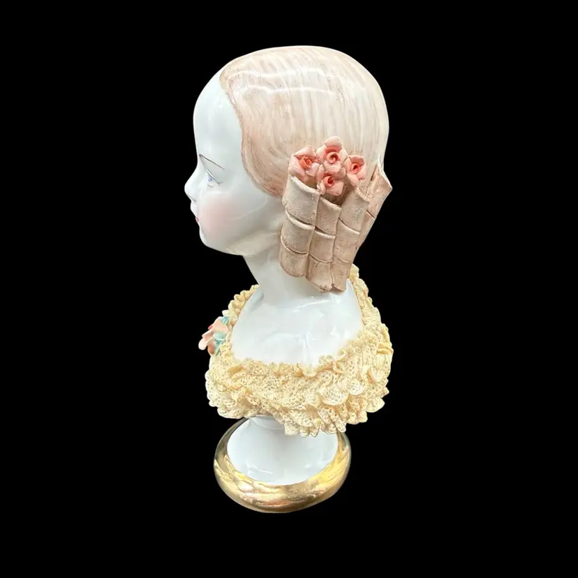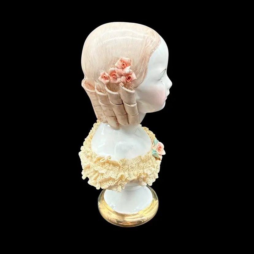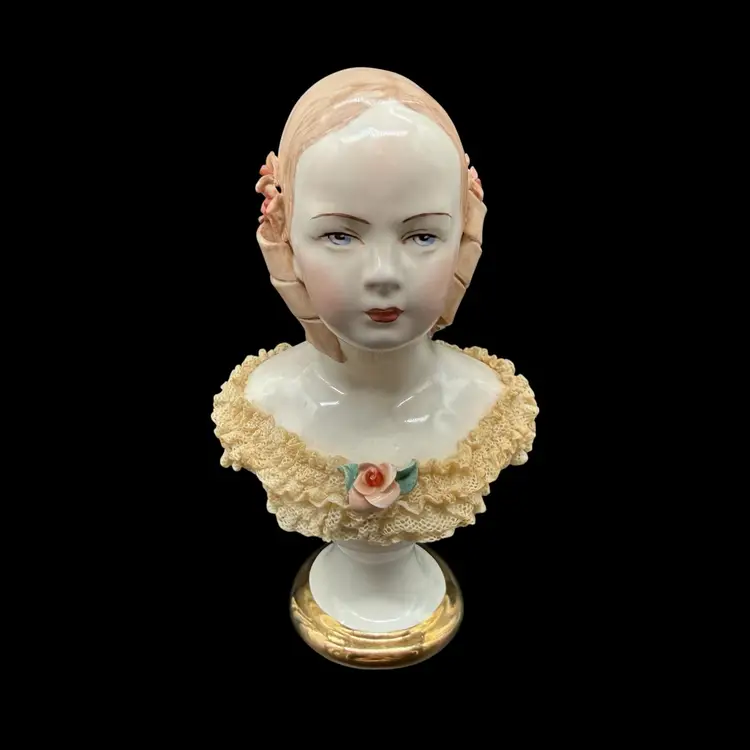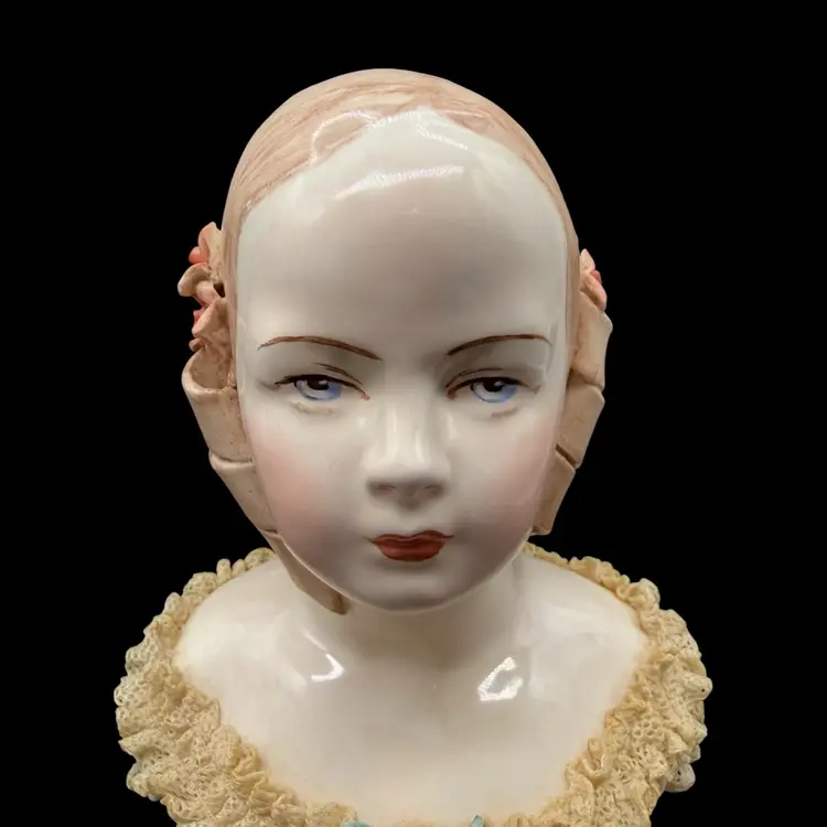 This vintage California Dresden Girl with Curls Bust figurine by Avis Wright is a charming piece for collectors or those looking to add a touch of Victorian-inspired elegance to their home decor. Hand-painted with intricate lace detailing and showcasing a unique multicolor palette, this 7-3/4" figurine depicts a beautiful girl named Jeannie, embodying a feminine and romantic aesthetic. Made of porcelain in 1957 in the United States, this collectible sculpture is a timeless addition to any room, perfect for art enthusiasts and lovers of vintage decor.