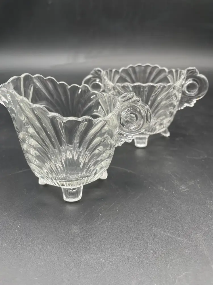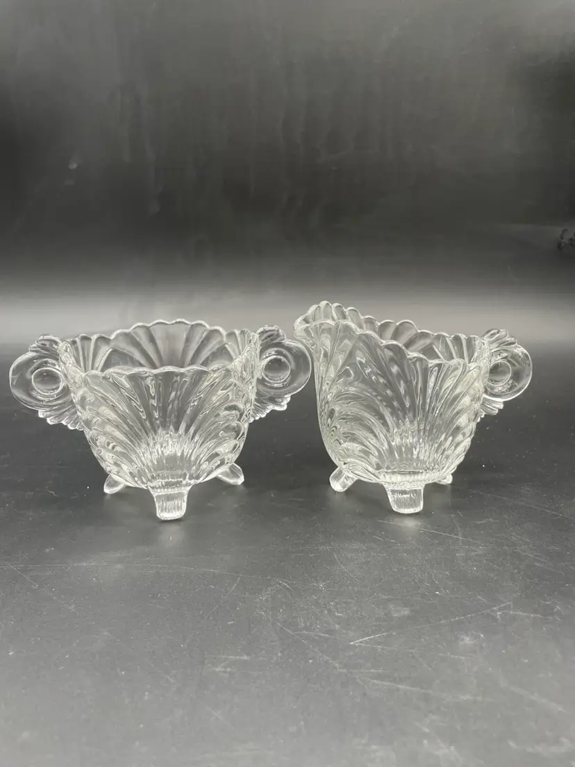 Vintage Cambridge Caprice Clear Glass Creamer & Sugar Set