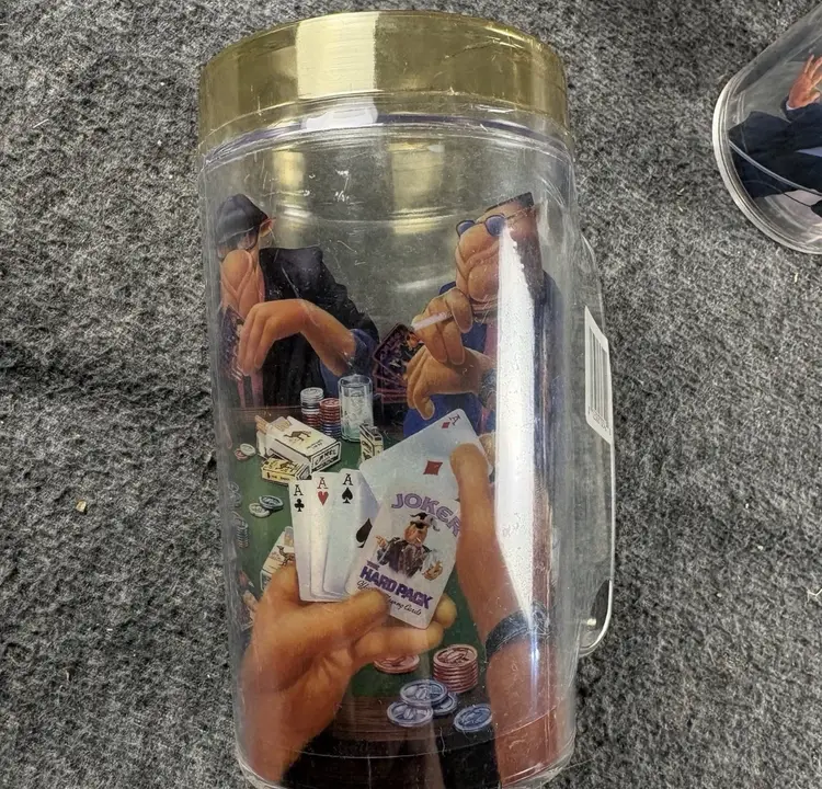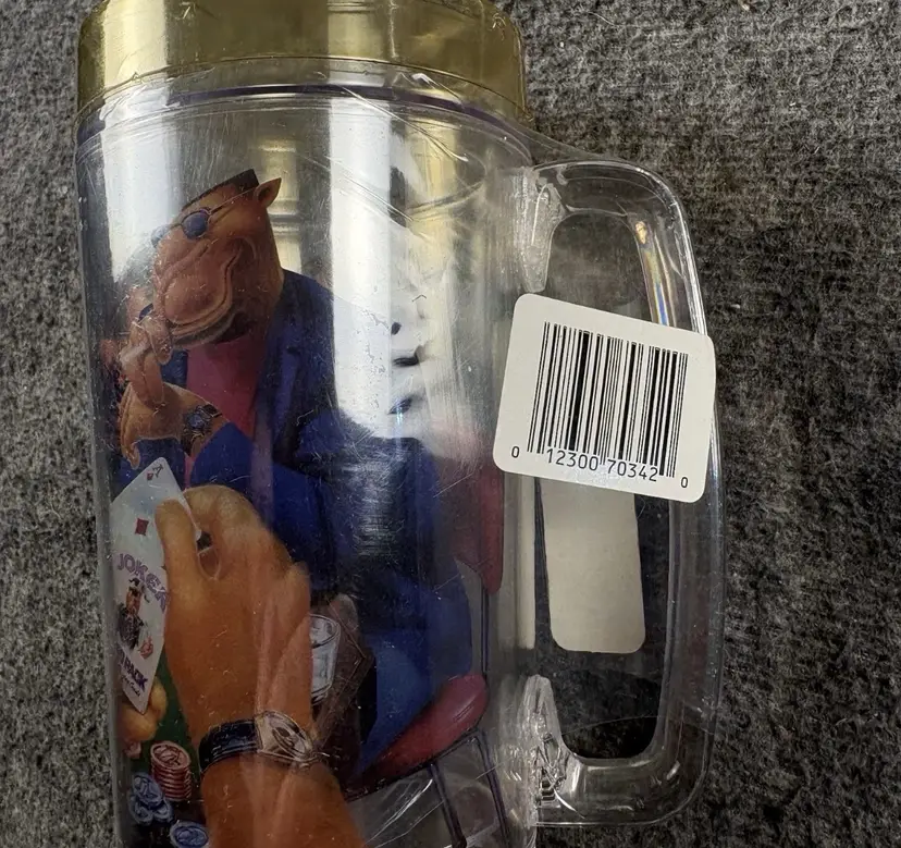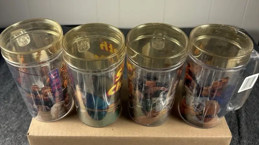 • Drinking cups are unsealed but unused; they have been in storage and may need cleaning prior to resale or display
