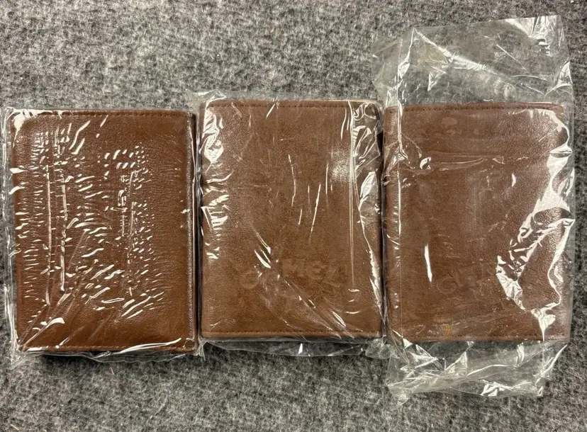 • 3 genuine leather Camel wallets – brown – sealed in original packaging