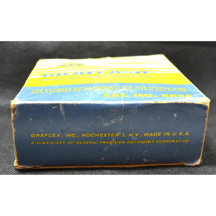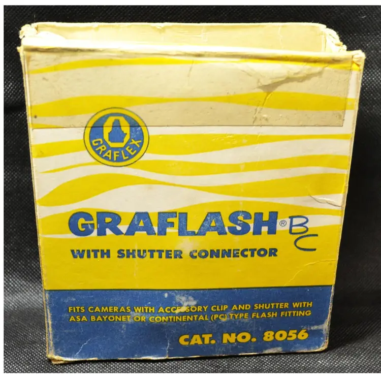 Vintage camera flash for older cameras that can accept this type of connector. Included is flash reflector, bulb, and cover. Box does have wear but is original to the unit. This would make nice addition to a vintage camera display.