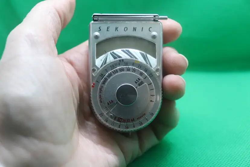 Capture the essence of vintage photography with the Sekonic L-8 Light Meter, a classic tool favoured by enthusiasts and professionals alike. Crafted in Japan, the meter boasts a robust analog design, providing a tactile and reliable method for measuring light that modern digital tools simply can't replicate. The Sekonic L-8 comes with its original leather case, adding a touch of sophistication and ensuring safe storage. Despite its age, the meter's craftsmanship is evident in every detail, and the 120gram weight makes it an easy companion for all your photographic adventures. Not tested but in very good vintage used condition. Please see photos as they are part of the description. Thank you for looking!