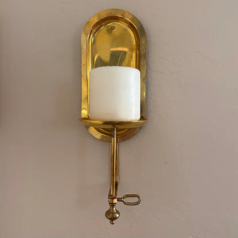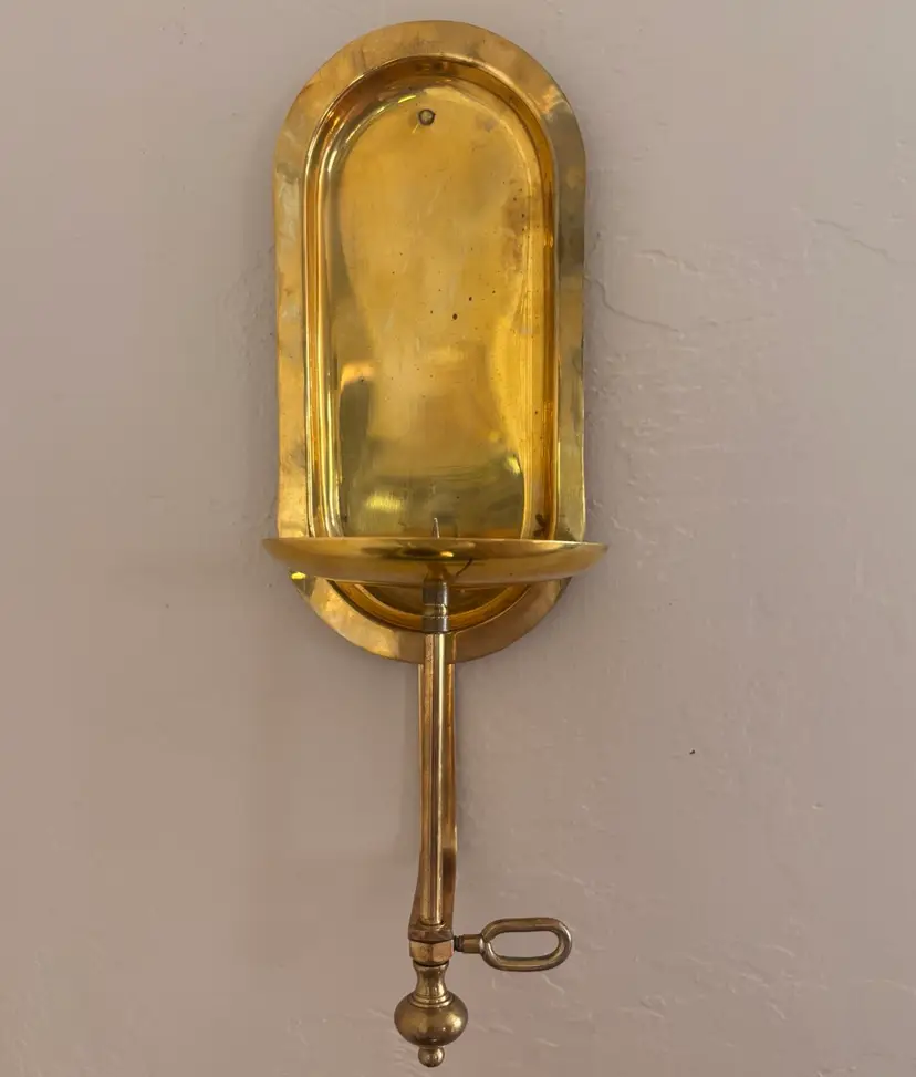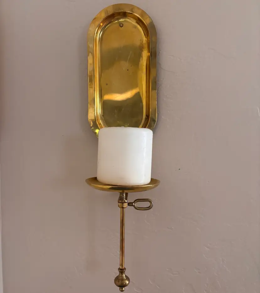Sweet sconce w/key that turns to adjust height 13 1/2”- 16” tall x 4 1/2”wide Vintage wear & patina as shown
